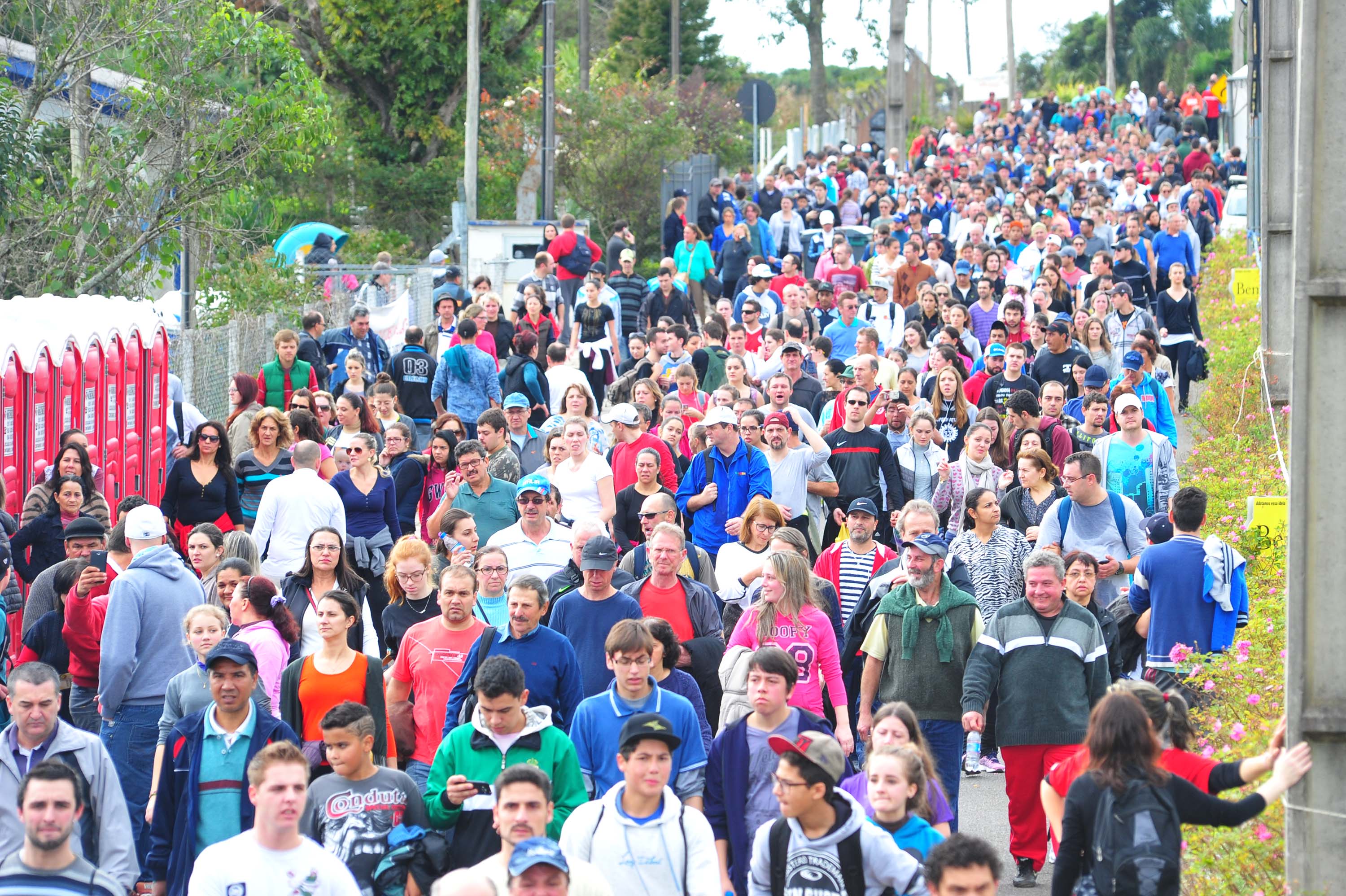 A Prefeitura de Caxias do Sul, em parceria com diversas entidades, ofereceu estrutura de apoio aos romeiros da 137ª Romaria ao Santuário de Nossa Senhora de Caravaggio. O objetivo da força-tarefa que reuniu secretarias, autarquias municipais e parceiros foi proporcionar conforto e segurança às pessoas na Estrada dos Romeiros, das 3h às 15h, de quinta a domingo (26 a 29/05). Nos quatro dias de peregrinação, aproximadamente 180 mil pessoas passaram pelo Santuário, em Farroupilha. Destas, cerca de 100 mil percorreram o trajeto onde os 300 voluntários da Prefeitura trabalharam nos 10 pontos de apoio. A CODECA recolheu aproximadamente cinco toneladas de lixo ao longo da Estrada dos Romeiros, de 11 quilômetros. O coordenador da ação e gerente de comercial de comunicação e marketing da CODECA, Gilberto Meletti, lembra que o volume é menor do que no ano anterior. “Constatamos que esse volume diminui a cada ano e isso se deve a conscientização da comunidade que tem atendido aos nossos apelos para o descarte correto do lixo e da importância da preservação do meio ambiente”, revelou A ação de auxílio aos romeiros teve o patrocínio da Rede de Postos SIM, Supermercados Andreazza, JBS, Café Bom Jesus, Siga Comunicação Visual e Orquidea e o apoio do 16º Distrito Escoteiro, Núcleo Bandeirantes Ir. Bonifácio, Polícia Rodoviária Estadual e Brigada Militar. Fotos: Andréia Copini