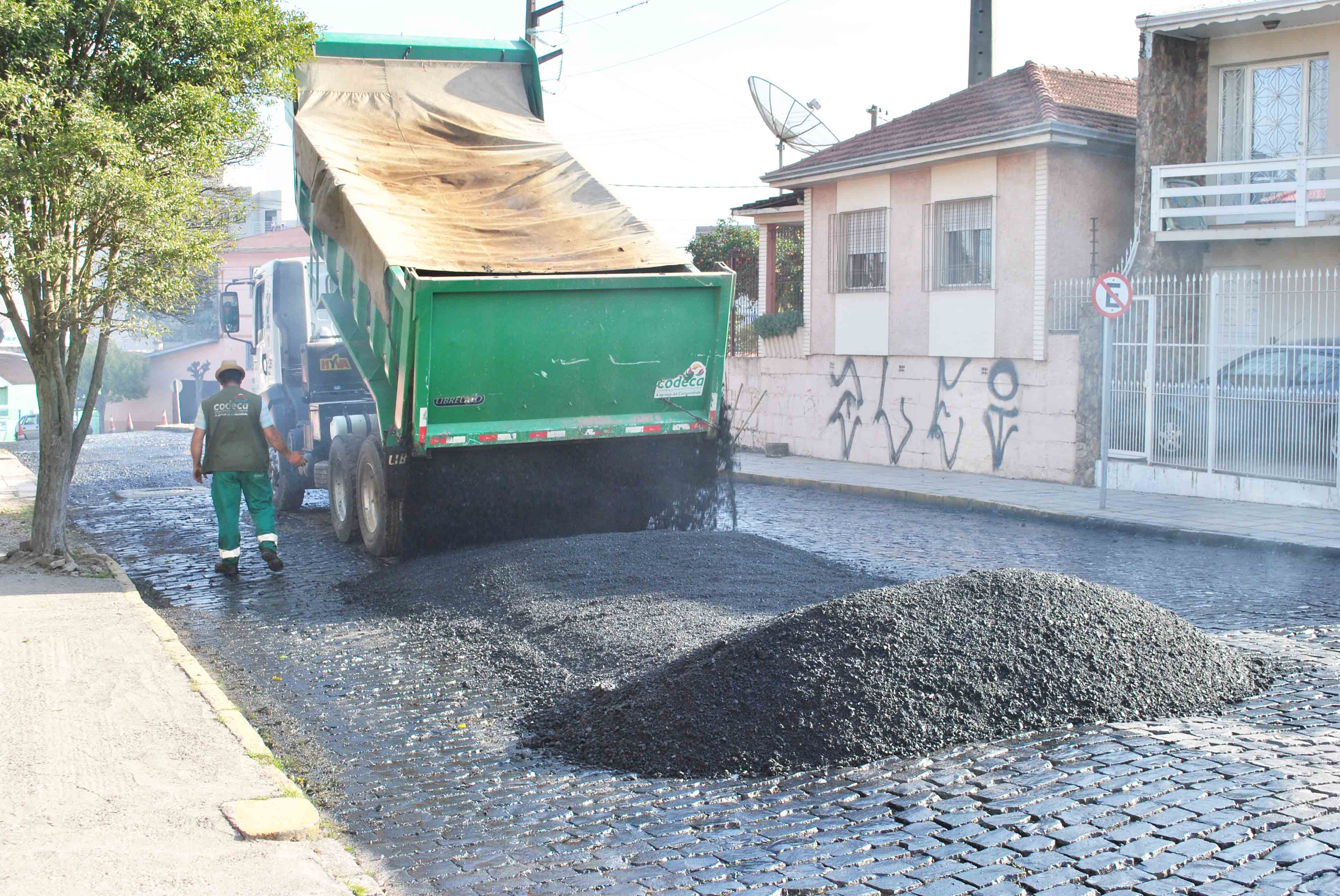 Equipes do Departamento de Construção Civil (DCC) da Companhia de Desenvolvimento de Caxias do Sul (CODECA) estão trabalhando nesta sexta-feira (05.08) na Av. Rio Branco, em Ana Rech, e na rua Irma Zago, no bairro Sagrada FamÃlia. A Companhia foi contratada pela Secretaria Municipal de Obras e Serviços Públicos (SMOSP) para executar melhorias na Av. Rio Branco, entre as ruas Pixinguinha e Júlio Calegari, em Ana Rech, além de remover a pavimentação asfáltica com defeito e executar a repavimentação na rua Irma Zago, entre as ruas Conselheiro Dantas e Humberto de Campos. Fotos: Erica Finimundi