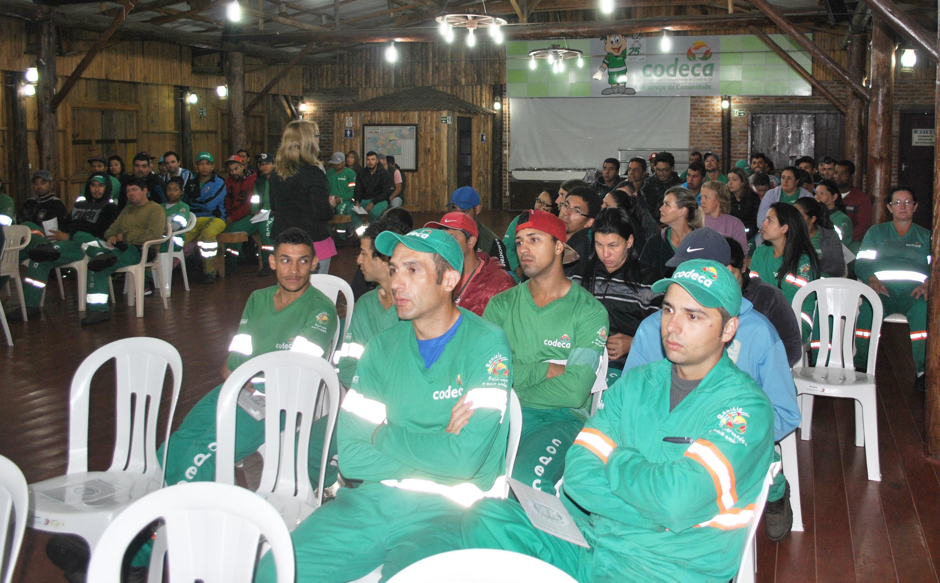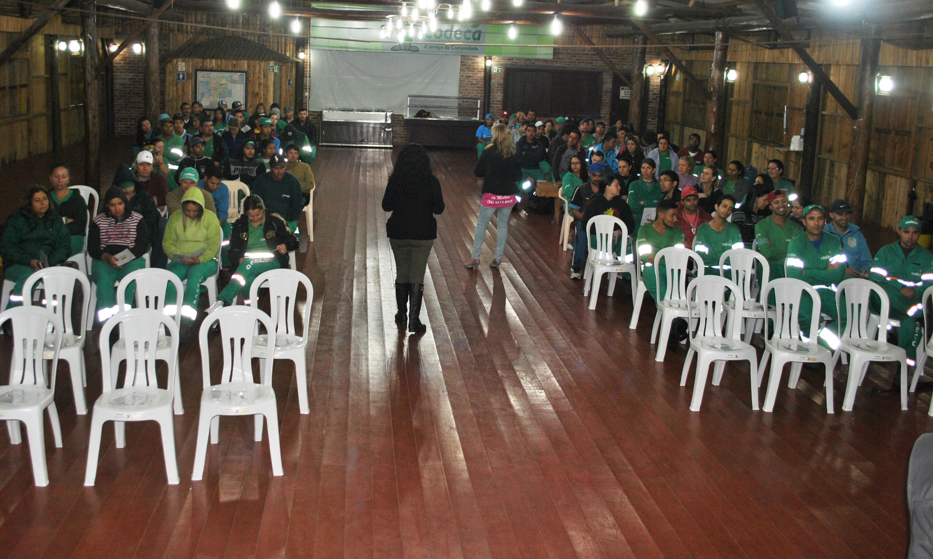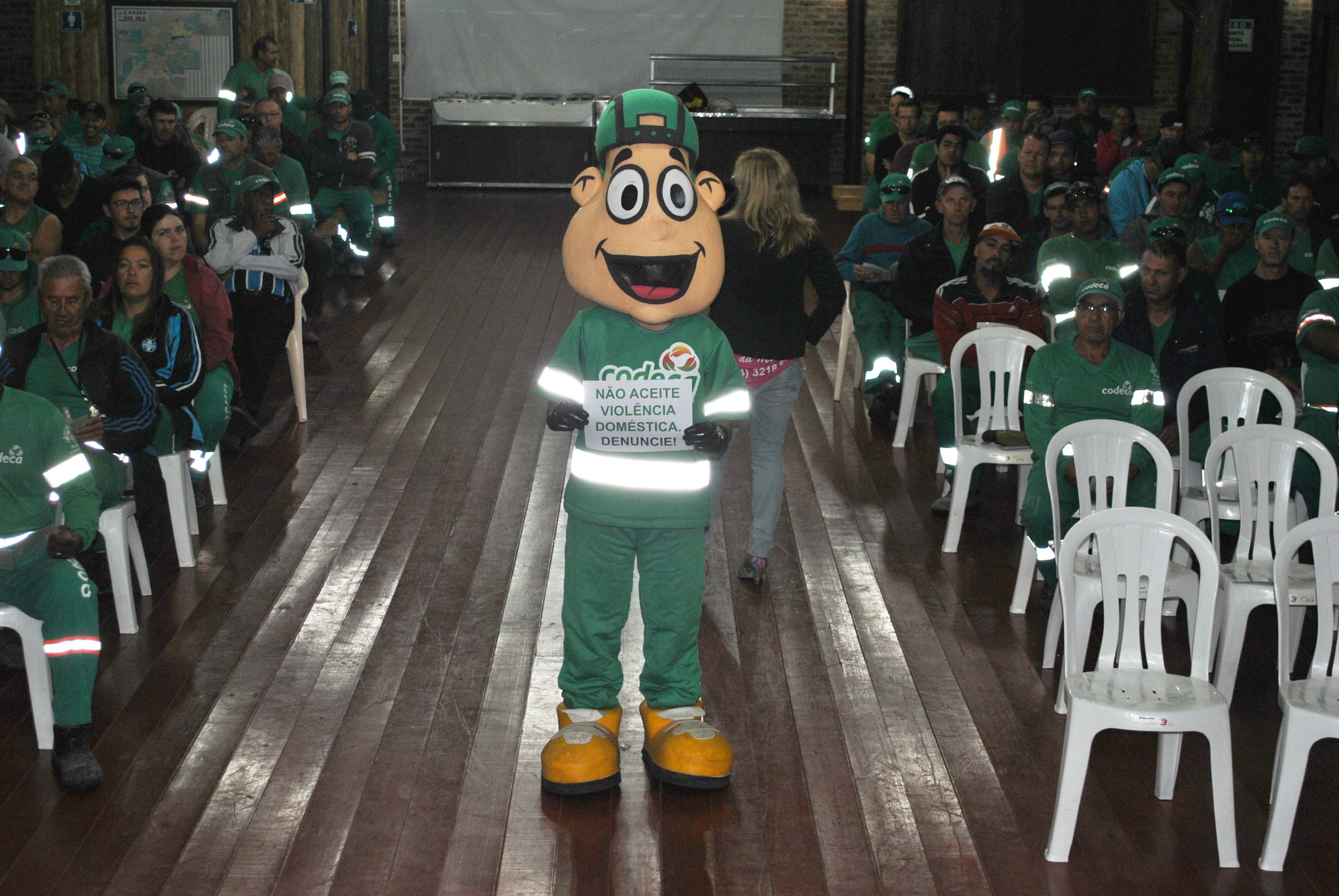 A Companhia de Desenvolvimento de Caxias do Sul (CODECA) promoveu nesta quinta-feira (08.12) uma palestra sobre a ‘Violência Doméstica - Conversando Sobre a Violência Contra a Mulher’. O encontro contou com a participação de 182 funcionários da equipe do Departamento de Construção Civil e 95 colaboradores do setor da Capina. O objetivo foi alertar os funcionários sobre a importância de denunciar a violência e mostrar os caminhos para solucionar este problema. Esse tema serve também como forma de proteção para as trabalhadoras e suas famÃlias. A palestra foi realizada no CTG da Companhia, sendo ministrada por integrantes do Centro de Referência da Mulher, da Coordenadoria da Mulher, da Secretaria Municipal de Segurança Pública e Proteção Social. A atividade fez parte da programação da Campanha 16 Dias de Ativismo, que iniciou no dia 20 de novembro e se estende até o dia 10 de dezembro desse ano. A Campanha surgiu em 1991, na ocasião 23 mulheres de diferentes paÃses se reuniram no Centro de Lideranças Global de Mulheres. Fotos: Erica Finimundi