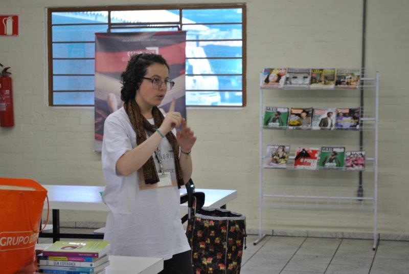 Cerca de 700 títulos estão à disposição dos funcionáriosO intervalo do almoço ganhou um certo ar cultural. Para não deixar o Mês do Livro e da Leitura passar em branco, a Codeca sediou, hoje (11/04), um Bingo Literário no refeitório, reunindo 22 funcionários. A partir da descrição das histórias contadas pela equipe do Sesi, eles podiam marcar, nas cartelas, os nomes das obras e seus autores, com direito ao sorteio de brindes no final. A atividade, coordenada pelo setor de Psicologia, foi um sucesso e já arregimentou interessados para uma próxima edição. “Começamos bem, pois a ação oportunizou outra novidade para os funcionários: o lançamento de nossa biblioteca”, comemorou a psicóloga Paula Onzi.A biblioteca funcionará na antiga sala da Central de Atendimento ao Cidadão (CAC), junto ao RH, porém permanecendo fechada. Os colegas aficionados por leitura devem solicitar atendimento na Psicologia, podendo escolher um livro por vez, com prazo de empréstimo por 15 dias. Se precisarem de mais tempo, a devolução pode ser prorrogada por mais 15 dias. Na retirada, os funcionários serão informados sobre os critérios de atraso, extravio ou perda de livros. A biblioteca dispõe de 700 obras, sendo que 500 foram adquiridas pela Codeca e 200, cedidas pelo Sesi (com renovação de títulos a cada seis meses). “Também contamos com doações de colegas, que são muito bem-vindas”, considerou Paula. Fotos: Alice Pellizzoni