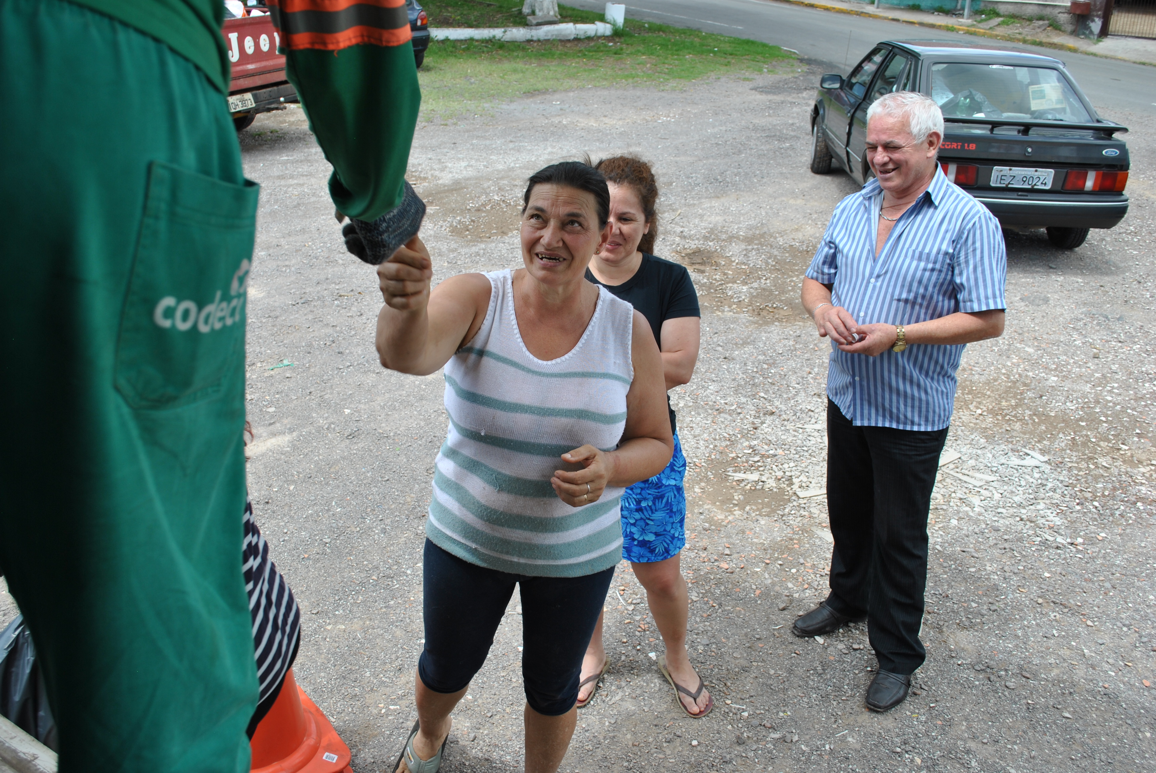 O mês de fevereiro terá quatro quintas-feiras, todas com edição do programa Troca Solidária em diferentes regiões de Caxias do Sul: dias 06, 13, 20 e 27. Nesses dias, as famÃlias de baixa renda podem trocar resÃduos seletivos por alimentos. De acordo com as regras do programa, cada quatro quilos de material reciclável dão direito a um quilo de hortifrutis, limitado a 15 quilos por famÃlia. Na edição de amanhã serão oferecidos banana caturra, batata inglesa, moranga cabotiá, pepino salada e tomate longa vida. Realizada todas as quintas-feiras em comunidades alternadas conforme cronograma disponÃvel no site da Codeca no seguinte endereço eletrônico: http://www.codeca.com.br/escala_troca_solidaria.php. A ação é uma iniciativa da Prefeitura e desenvolvida pela Codeca em parceria com a Secretaria da Agricultura, Pecuária e Abastecimento (Smapa) e a Fundação de Assistência Social (FAS). Confira os locais em ocorrerão o Troca Solidária nesta quinta-feira (06/02): TURNO DA MANHÃ 7h15: Asa do Aeroporto - Rua Ernesto Pizzamiglio, esquina com Av. Salgado Filho 7h15: Marianinha de Queiróz - Travessão Leopoldina (em frente à escola) 8h45: Planalto - Rua Natal Idalino Fadanelli (ao lado da cancha de areia) 8h45: Centenário - Rua Hipólito José da Costa, esquina com Av. Dr. Mário Lopes 10h15: 1º de Maio - Rua Giácomo Capeletti (em frente ao Centro Comunitário) 10h15: São Vicente - Rua Assis Brasil (em frente à UBS) TURNO DA TARDE 13h15: Kayser – Av. Rio Branco, esquina com Rua Verginio Tonietto 13h15: Vitória - Rua Carlos Molon (na área verde) 14h45: Portinari - Rua São Matheus, próximo à pedreira 14h45: Conquista - Rua Av. Cabo Machado Severo (ao lado da escola) 16h15: Aeroporto - Rua Flavio Chaves, esquina com Rua Albano Caberlon 16h15: Campos da Serra - Rua Marieli Cardoso de Oliveira (ao lado da UBS) Fotografias: Gustavo Tamagno Martins