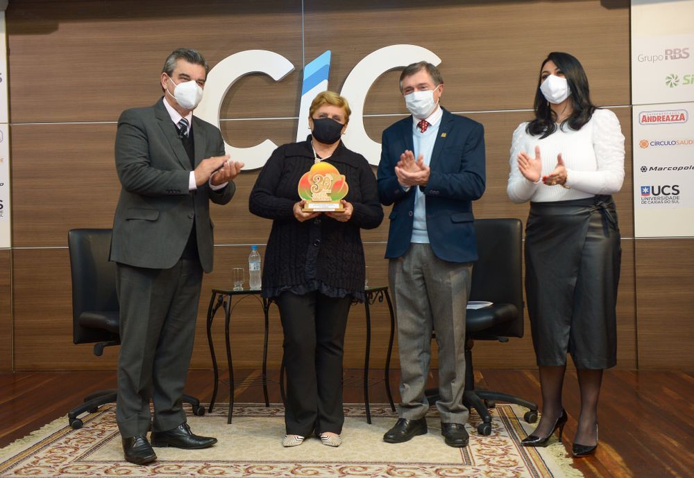 A Companhia de Desenvolvimento de Caxias do Sul (Codeca) prestou nesta segunda-feira (16/8) homenagem aos idealizadores da implantação da coleta seletiva em Caxias do Sul. O serviço, que teve início em 15 de agosto de 1991, completa 30 anos. Durante a reunião-almoço da Câmara de Indústria, Comércio e Serviços de Caxias do Sul (CIC) foram agraciados a professora Vania Elisabete Schneider, atual diretora do Instituto de Saneamento Ambiental da Universidade de Caxias do Sul, e Geraldo Adami, diretor da Codeca na época. Os troféus alusivos à data foram entregues pelo prefeito Adiló Didomenico e pela diretora-presidente da Codeca, Helen Machado, acompanhados pelo presidente da CIC, Ivanir Gasparin. O prefeito recordou de quando presidiu o Conselho de Administração de 1989 a 1997 e acompanhou a implantação da coleta seletiva. Lembrou aonde eram depositados os resíduos na época e da evolução com o passar dos anos, levando Caxias do Sul a ser pioneira em várias frentes. “Tivemos oportunidade de ser a primeira cidade a implantar a coleta seletiva. O caminhão passava batendo sininho e as pessoas levavam os resíduos devidamente limpos, separados e acondicionados, o que não se vê mais hoje. Caxias também foi pioneira em coletar e destinar pneus em 2005 e com a coleta mecanizada em 2007, além de termos um novo aterro sanitário”. Adiló Didomenico ainda falou da parceria com a comunidade. “Sempre que chamada, a comunidade foi muito parceira. Precisamos retomar este estímulo para que Caxias volte a figurar entre as cidades mais limpas do estado e do país”, afirmou. A presidente da Codeca, Helen Machado, comparou a grandeza da empresa com a cidade de Caxias. Ressaltou o desafio para a sociedade caxiense há 30 anos fazer algo tão inovador como separar resíduos recicláveis dos orgânicos. Disse estar orgulhosa em poder representar os cerca de 1.200 funcionários da companhia, que estão sempre focados em entregar um serviço de qualidade, que nunca pararam seus trabalhos, mesmo com a pandemia. “Temos um processo educativo e corretivo e este ato visa também refletir nas pessoas que dependem desses resíduos, como os nossos colaboradores e recicladores”, destacou. A professora Vania Elisabete Schneider também foi a palestrante da reunião-almoço. Ao abordar o tema “Do sonho à realidade: 30 anos da coleta seletiva em Caxias do Sul”, detalhou como tudo começou, a história, o desenvolvimento do serviço e os futuros desafios que passam pela elaboração do Inventário dos Resíduos Sólidos, a implantação da logística reversa, a redução dos resíduos destinados ao aterro e a segregação dos resíduos em orgânicos, recicláveis e rejeitos, atendendo ao Plano Nacional de Resíduos Sólidos.