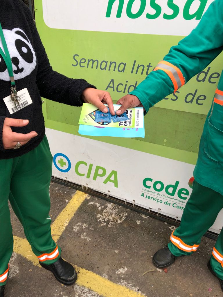 A Codeca, por meio da Comissão Interna de Prevenção de Acidentes (CIPA), promove até sexta-feira (17/09) a Semana Interna de Prevenção de Acidentes (SIPAT) 2021 com o tema “Atitudes e Atos Seguros – A vida é nosso bem maior!”. A abertura oficial ocorreu nesta segunda no pátio da Companhia com a presença da diretora-presidente Helen Machado, do diretor administrativo-financeiro Gustavo Pospichil, da presidente da CIPA, Fernanda Girelli e demais membros da Comissão, da equipe do Setor de Segurança do Trabalho da empresa, gerentes, encarregados, líderes e funcionários. Os colaboradores Marcos André Borges e Lindonês Pires da Rosa abrilhantaram o ato com músicas tradicionalistas, alusivas também à Semana Farroupilha. O encarregado da Segurança do Trabalho, Arno Quevedo, destacou a importância do tema da Semana deste ano. “A aspiração humana é viver muitos anos da melhor maneira possível com as melhores condições. Precisamos olhar um pelo outro, seja para nós, seres humanos, seja para a empresa e para a sociedade, que dependem de nós. Precisamos continuar pensando na prevenção de acidentes, porque chegamos ao menor patamar desde 2015. E assim queremos continuar reduzindo estes índices”, informou. A presidente da CIPA e gerente de Recursos Humanos e Qualidade, Fernanda Girelli, destacou a programação especial da SIPAT. “Teremos muita informação e reflexão sobre o nosso bem maior, que é nossa saúde física e mental”, afirmou. A presidente Helen Machado cumprimentou os cipeiros pela organização da Semana, com várias atrações, mesmo sem recursos financeiros. “A ideia desta SIPAT é trazer o processo de auto-consciência. Pensar o quanto que nós somos responsáveis por esta empresa e por tudo que acontece nela e quanto podemos nos comprometer e mudar de atitudes. Precisamos resgatar valores, valores que não tem preço. Quando cuidamos de nós, damos valor à vida. A SIPAT vem para fazer com que o funcionário entenda que ele é muito importante e faz parte do processo de transformação da Codeca para melhor”, discursou. São várias atividades na programação da SIPAT da Codeca como distribuição de preservativos e de material informativo sobre DST/Aids, ginástica laboral e palestras sobre prevenção de acidentes, qualidade de vida, acidentes psicológicos do trabalho (Setembro Amarelo), segurança no trânsito e uso correto de EPIs. No encerramento, na sexta-feira, haverá grafitagem de um caminhão da coleta seletiva (já alusivo às campanhas Outubro Rosa e Novembro Azul) e mateada.