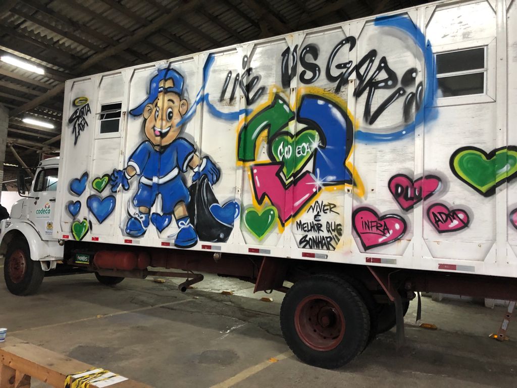 SIPAT da Codeca encerra com grafitagem de caminhão da coleta seletiva