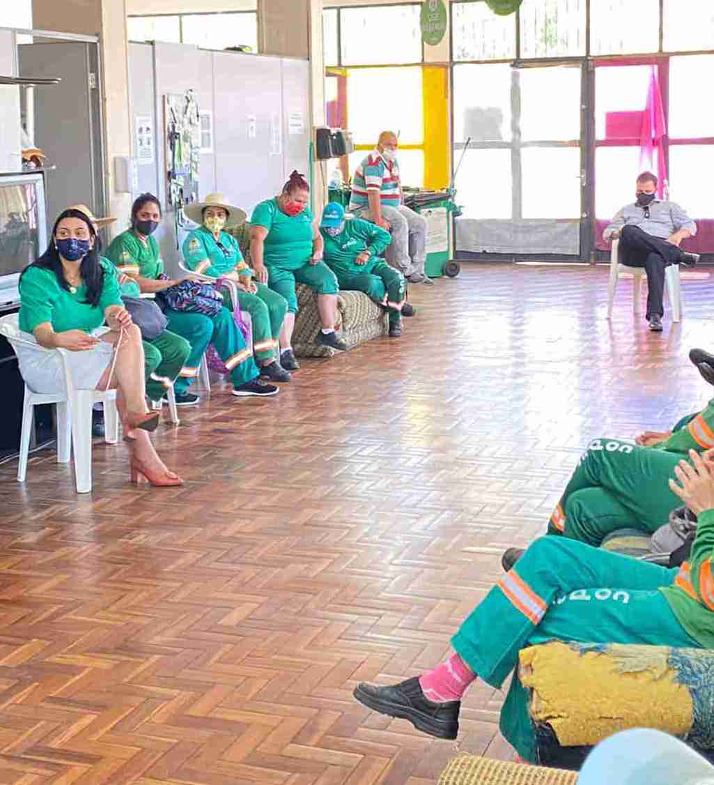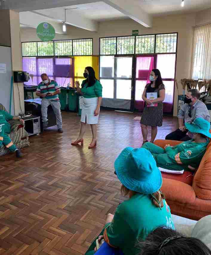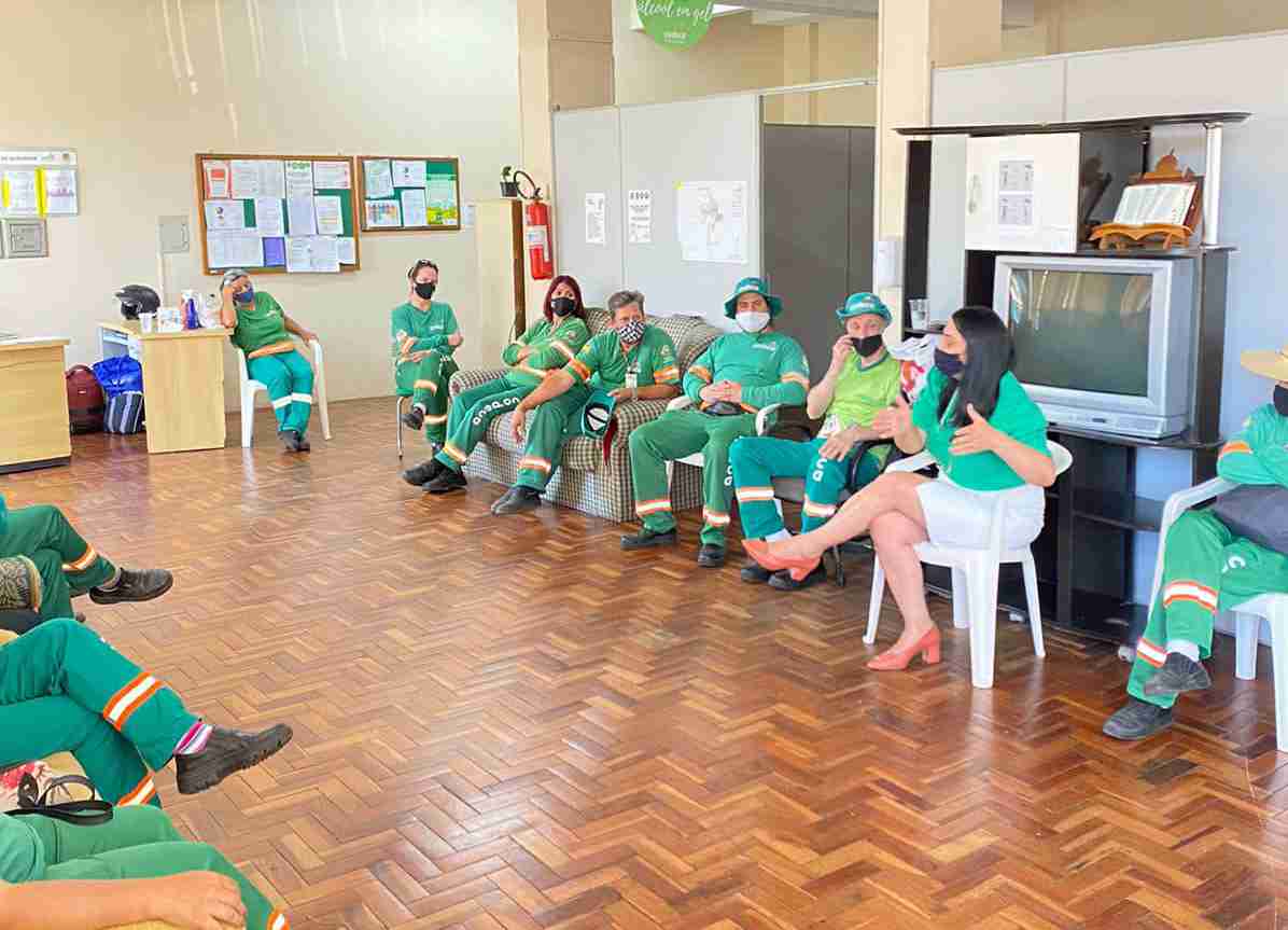 Nesta segunda-feira(22/11) a diretora-presidente Helen Machado esteve conversando com os funcionários da Sala de Varrição São Pelegrino, dentro do programa Conexão Codeca. O Conexão Codeca é um canal de comunicação direto entre a diretoria e os colaboradores, visando o compartilhamento de projetos, ideias, informações e resultados, sem intermediação, possibilitando que todos possam dar sugestões para a recuperação e o resgate de valores da Companhia. Participaram também do encontro o diretor Operacional, Rafael Tregansin, a gerente de RH e Qualidade, Fernanda Girelli e o supervisor da Varrição, Sérgio Eberhardt.