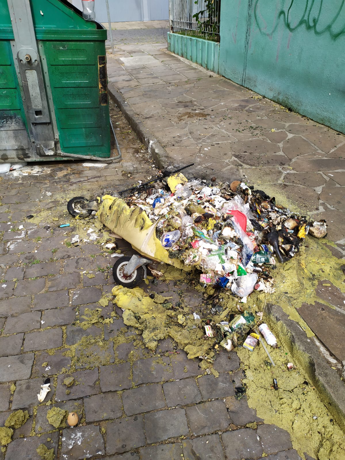 A Codeca já contabiliza em 2022 dois equipamentos amarelos, dos resíduos seletivos, queimados na cidade. O primeiro, nas primeiras horas do ano novo, foi queimado em frente à sede do Samae, na rua Pinheiro Machado, no centro. Este equipamento era novo, tinha recém sido substituído pela Companhia, porque o outro também havia sido incendiado. O segundo foi registrado no dia 03, na rua Irma Valiera, no bairro São Pelegrino. O vandalismo com os contêineres de plástico atingiram 119 unidades em 2021, contra 193 em 2020. Diminuiu a quantidade, porém no último mês de dezembro a Codeca registrou outros 90 equipamentos avariados (por roubo ou quebra da tampa, furto de peças e rodas ou totalmente depredados/quebrados). “A cidade tem hoje um déficit de mais de 300 unidades para atender a área mecanizada. A Companhia não dá conta de substituir, devido ao vandalismo. Em 2021 foram investidos cerca de R$ 240 mil na compra destes contêineres que podiam ser aplicados em melhorias no atendimento à população”, avalia a diretora-presidente da Codeca, Helen Machado. Os contêineres verdes, por serem de metal e mais resistentes e pesados, não pegam fogo, entretanto também sofrem depredação como o furto de rodas e do cabo de aço que abre a tampa. Com o aporte da Prefeitura à Codeca, a Companhia está adquirindo 300 novos equipamentos para suprir em parte a necessidade, em um investimento na ordem de R$ 1 milhão. “Os novos equipamentos já foram comprados e devem ser entregues nas próximas semanas. A intenção é que estejam repostos para a Festa da Uva”, informa Helen. Atualmente, a área da coleta conteinerizada conta com 1.600 pares de contêineres. O ideal seriam 2 mil pares para atender a logística do sistema mecanizado.