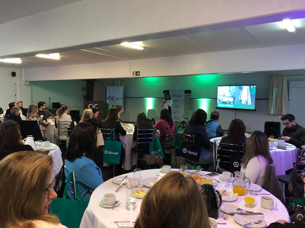 A diretora-presidente da Companhia de Desenvolvimento de Caxias do Sul (Codeca) Maria de Lourdes Fagherazzi palestrou no Café com Informação da Câmara de Indústria, Comércio e Serviços de Caxias (CIC) nesta quinta-feira (25). O convite partiu do Conselho da Mulher Empresária da CIC, promotor do tradicional evento. Maria de Lourdes abordou o tema “O ecossistema de gerenciamento de resíduos sólidos sob a ótica social”, iniciando sua fala com as questões sociais e econômicas que envolvem o tema. A presidente da Codeca mostrou ainda, por meio de fotos, exemplos da responsabilidade da população, catadores, coletores (Codeca), empresários e das reciclagens na cadeia dos resíduos na cidade. “O objetivo foi mostrar que a problemática do gerenciamento dos resíduos sólidos não é tão simples e não está centrada em um agente especificamente”, reforçou. Maria de Lourdes Fagherazzi ainda contou aos presentes sobre a sua gestão à frente da Companhia. “O planejamento estratégico foi revisitado e definimos como valores norteadores: limpeza, felicidade, sustentabilidade, impacto social e excelência. O trabalho em equipe na empresa e com a ajuda de todos os agentes envolvidos na cadeia, a Codeca e Caxias do Sul voltarão a ser excelência em limpeza urbana como já foram um dia”. Por fim, a palestrante respondeu às perguntas da plateia em bate-papo mediado pela presidente do Conselho da Mulher Empresária, Ágatha Tonietto.