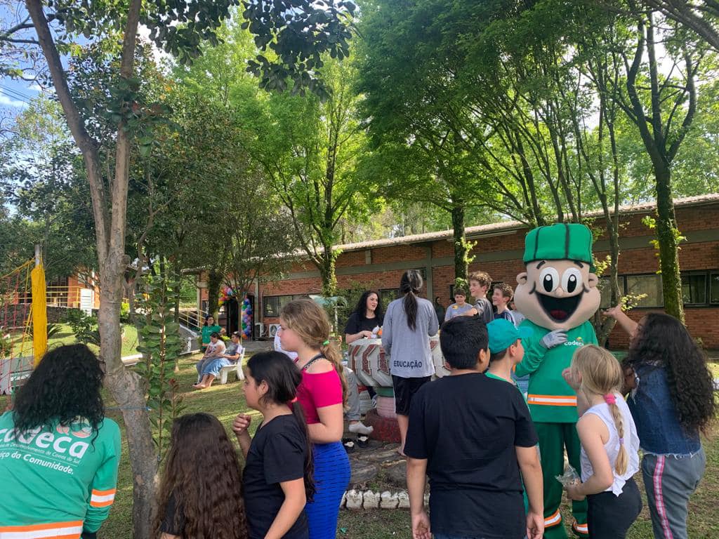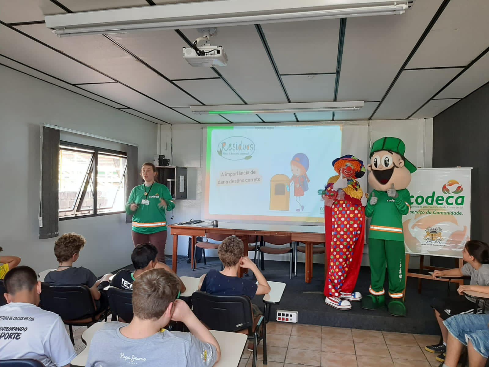 Na semana da criança, dias 10,11,13 e 14 de outubro, a Codeca abriu as portas para as crianças de entidades assistenciais e para os filhos dos funcionários, todos entre 6 e 12 anos de idade. Em dois dias de tempo seco recebemos cerca de 100 crianças, professores e pais. Na empresa, a gurizada assistiu a uma palestra sobre a separação correta dos resÃduos, conheceu a garagem, a oficina e a lavagem, brincou na cama elástica e no tobogã inflável, fez foto no caminhão da coleta, e fez piquenique com biscoitos, frutas, água, pipoca e algodão doce. O Codequito fez a alegria da criançada com os mascotes do Caxias e do Juventude e o palhaço Bolinha. A festa foi feita com o apoio da diretoria, a ajuda de vários funcionários e de muitas empresas parceiras que doaram os alimentos, a água, os balões, as guloseimas e emprestaram os brinquedos.Â