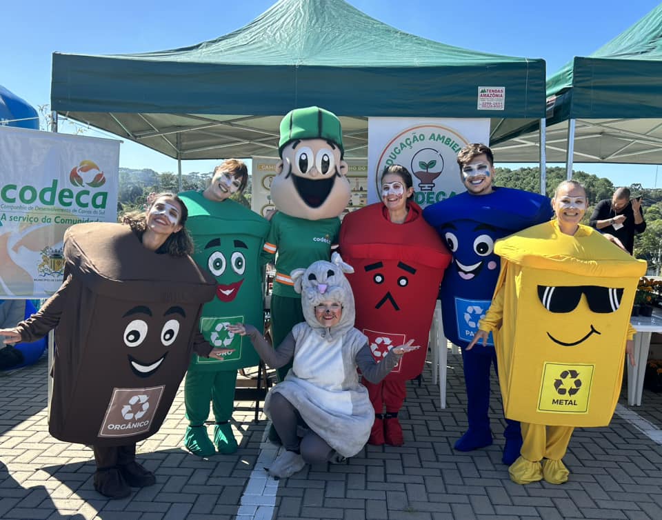 A primeira EcoFest - Festa da Ecologia, promovida pela SEMMA, foi um sucesso! O dia lindo deste sábado levou mais de 12,5 mil pessoas ao Ecoparque. A programação teve foodtrucks, brincadeiras, atrações artÃsticas, educação ambiental, entre outras atrações. A Codeca esteve presente com jogos educativos sobre a separação correta dos resÃduos, com o Codequito e com a limpeza da área, A convite da Codeca esteve presente o grupo de teatro Conceitoh Produções ArtÃsticas, que fez a alegria da garotada com seus figurinos coloridos. Os atores apresentam uma peça sobre a correta separação do lixo, que será lançada na Semana do Meio Ambiente, em junho. Mais um grande evento em nossa cidade onde plantamos várias sementinhas de conscientização e preservação do meio ambiente.