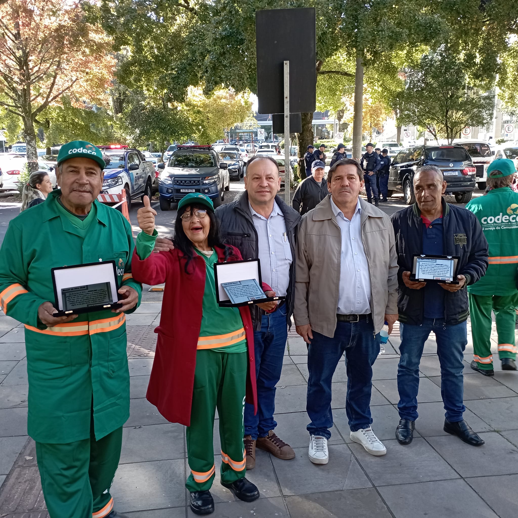 O Sindilimp ocupou a Tribuna da Câmara Municipal nesta terça-feira, 16 de maio, para homenagear os garis pelo seu dia. O presidente do sindicato, Henrique Silva, falou da importância da Codeca e da categoria para a cidade. \\\"São pessoas a serviço das pessoas!\\\". Representando a categoria, foram homenageados os funcionários do Departamento de Limpeza Urbana (DLU): o coletor João Carlos da Silva Oliveira, o capinador Moacir da Silva Wolff e a varredora Ieda Brum Gomes. O gerente do DLU, Gilvane Lima Lourenço e o supervisor da Varrição, Sérgio Eberhardt acompanharam a sessão no plenário.