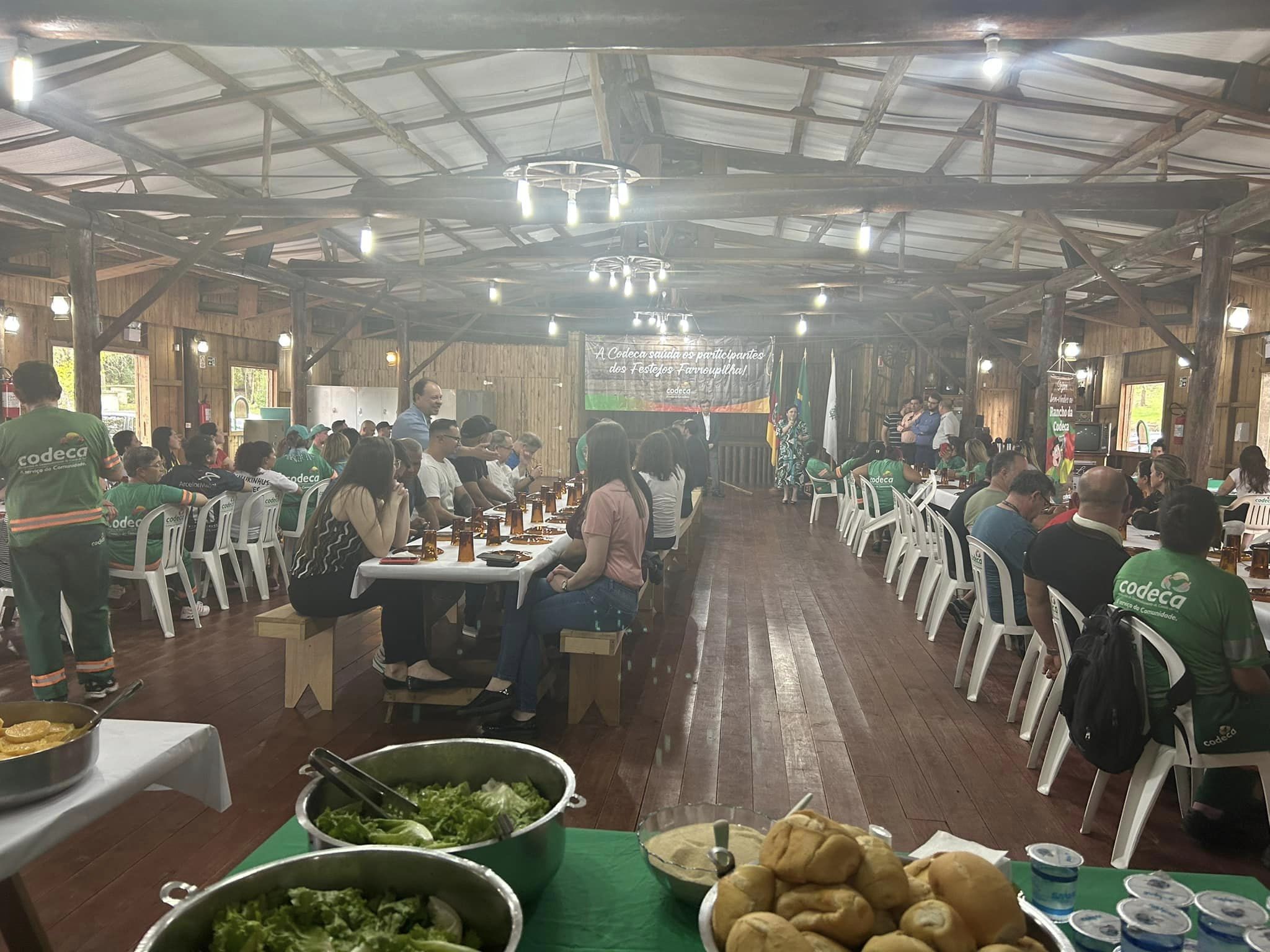 A Codeca promoveu atividades esta semana alusivas ao dia Vinte de Setembro. Na segunda e na terça ocorreram almoços campeiros no CTG da empresa. Na segunda-feira, o encontro teve a presença do prefeito Adiló Didomenico e dos secretários municipais João Uez (Semma) e Norberto Soletti (Smosp). Na terça-feira, o representante das redes de Postos Gambino, Enio Martins almoçou no nosso CTG. A rede patrocinou os aventais da equipe diretiva que serviu o almoço aos funcionários. Este ano, as refeições foram preparadas pelo chef Leonardo Nickel e equipe. O Samae, a Ceasa Serra e a Tua Rádio São Francisco apoiaram as atividades com a doação de copos de água, laranjas e os papéis toalhas de mesa. Após o feriado, nesta quinta-feira, aconteceu a mateada no pátio, com a animação de Jaison Valmarath na gaita e Lindonês da Rosa no violão. O peão Felipe Lisboa apresentou a tradicional chula para os funcionários presentes. A mateada da Codeca teve o apoio da Erva-mate Jacutinga.
