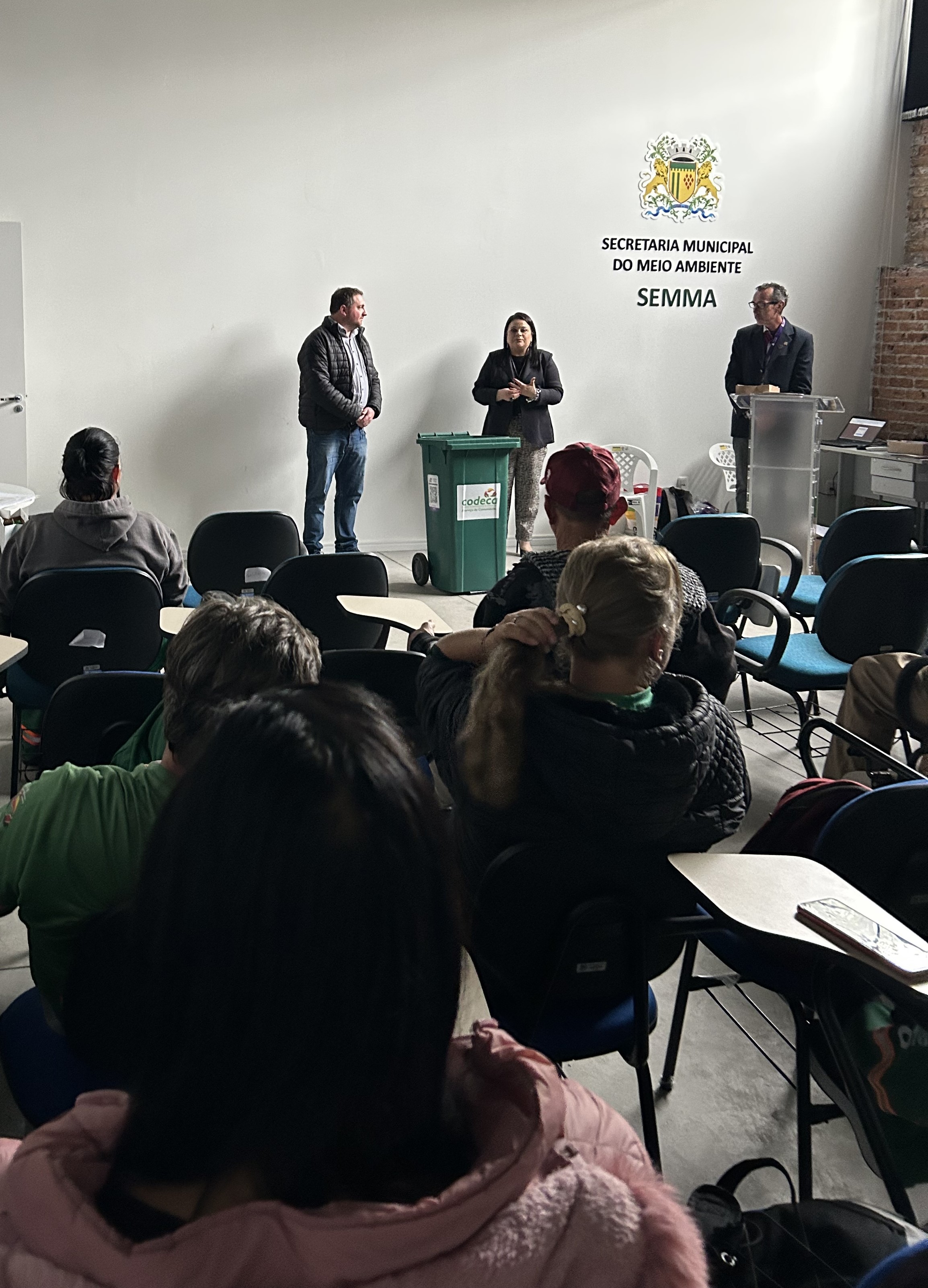 A Companhia de Desenvolvimento de Caxias do Sul (Codeca) promoveu esta semana um treinamento para as equipes de Varrição voltado ao atendimento ao turista e informações aos visitantes da Mercopar e da Festa da Uva 2024. A atividade teve o apoio da Secretaria do Turismo, por meio do coordenador geral Sandro MaurÃcio da Silva, que falou abordou \"Receptivo e turismo consciente na Festa da Uva 2024\". Sandro também informou sobre a campanha Curta Caxias, que visa afixar nos empreendimentos e nos veÃculos adesivos com QRCode que direciona para o site www.curtacaxiasdosul.com.br, onde estão concentradas as informações sobre a atividade turÃstica da cidade. Aproveitando o treinamento das equipes da Codeca, a presidente da empresa, Maria de Lourdes Fagherazzi e o secretário do Turismo, Ricardo Daneluz adesivaram com o QRCode um carrinho da varrição no inÃcio da palestra desta sexta-feira. Todos os carrinhos das equipes que circulam pela área central e bairros São Pelegrino, Pio X e Lourdes receberão o adesivo. Daneluz ressaltou que todo caxiense é guia e pode dar informações. Entretanto, taxistas, motoristas de aplicativos e os funcionários da Codeca que estão nas ruas tem o primeiro contato com o turista. \"O site é uma ferramenta importante para o visitante e vocês levando esse QRCode podem nos ajudar para que Caxias receba cada vez melhor seus visitantes\", destacou. A presidente da Codeca lembrou que além do turismo de lazer, Caxias tem o turismo de negócios como a Mercopar, que acontece ainda este mês, no Parque Mário Bernardino Ramos. \"Estas feiras importantes trazem muita gente de fora para cá, fomenta nossa economia com hotéis e restaurantes cheios. Como é bom quando vamos num lugar e somos bem recebidos! Essa recepção é que fica e que as pessoas falam para as outras. Nós da Codeca também vamos ajudar a receber bem nossos visitantes\". O treinamento ocorreu de quarta a sexta, das 14h à s 16h, no auditório da Secretaria do Meio Ambiente.