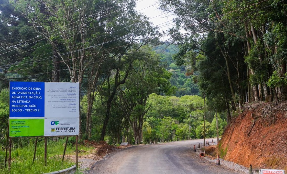 A obra de pavimentação da Estrada Municipal João Boldo, que faz a ligação entre Caxias e Flores da Cunha, tem projeto de 750 metros de asfaltamento que irá completar a via alternativa à RS-122. No momento, estão prontos 600 metros da primeira camada de base. O investimento nas obras desse trecho é de R$ 2,5 milhões. A estimativa é de que o trabalho seja concluÃdo em oito meses, com execução pela Codeca e acompanhamento da Secretaria Municipal de Obras e Serviços Públicos.Â