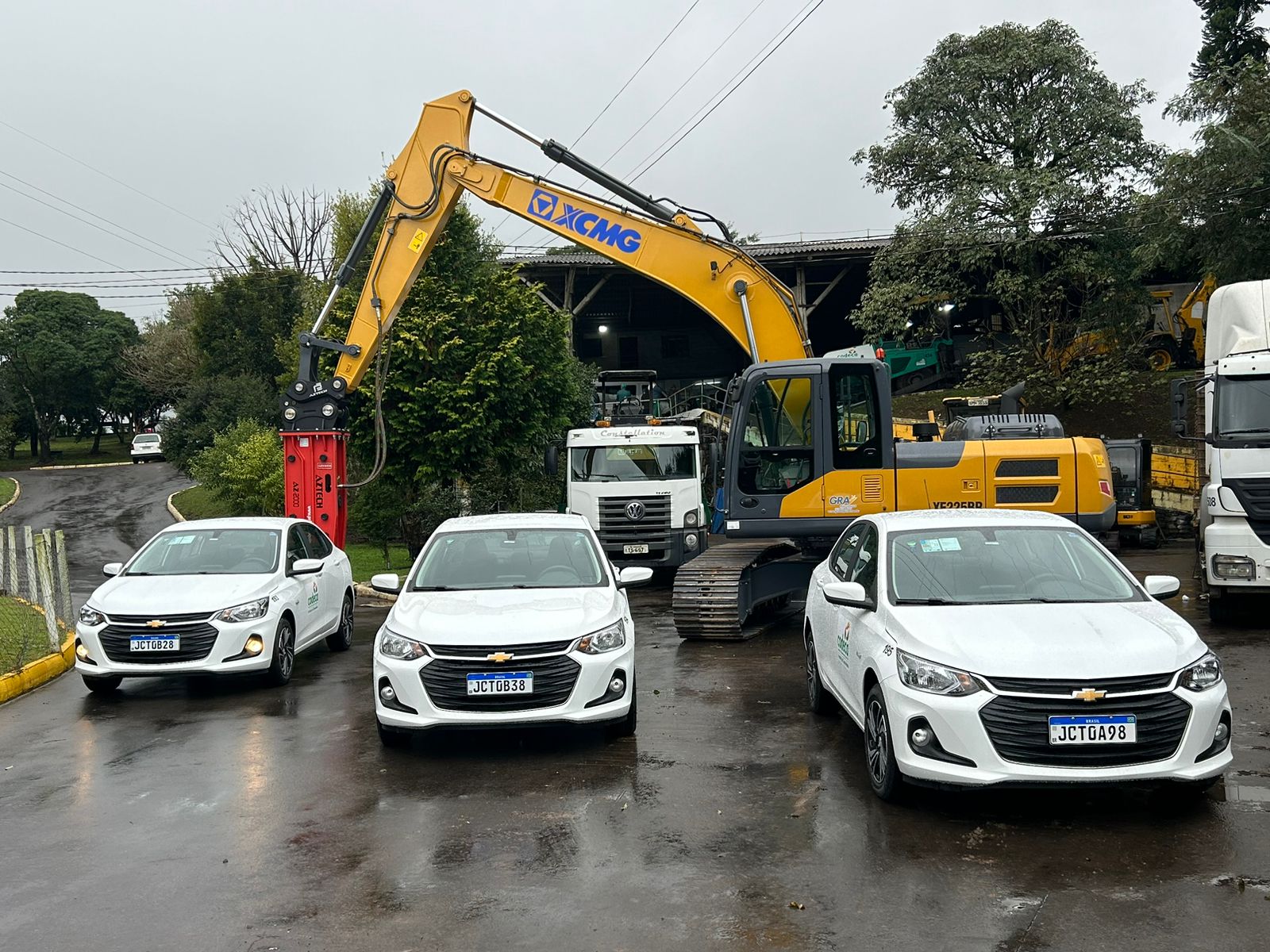 A Companhia de Desenvolvimento de Caxias do Sul (Codeca) recebeu nesta segunda-feira (24/06) uma nova escavadeira hidráulica e rompedor hidráulico com engate rápido. O equipamento irá atuar no Departamento de Construção Civil (DCC), responsável pela realização de obras no município. Também foram entregues mais três veículos Onix, que serão utilizados diariamente nas operações do Departamento de Limpeza Urbana (DLU) para fiscalizações das coletas de resíduos, para serviços de varrição e para o transporte de funcionários. Estes equipamentos integram o processo de renovação da frota da empresa, possibilitada por meio de financiamento com o Badesul. O investimento total alcança R$ 30 milhões na compra de veículos e máquinas, entre eles novo caminhão com compactador de carga mecanizado lateral para coleta de lixo orgânico, caminhão 6x4 com caçamba basculante, caminhões compactadores com lifter, rolos compactadores combinados, retroescavadeira, pá carregadeira, escavadeira hidráulica e lava contêiner. Parte desses itens já está em operação. Os demais serão entregues ao longo deste ano. “A renovação da frota qualifica o serviço à população, oferece melhores condições de trabalho aos colaboradores e representa economia em manutenção e em locação de equipamentos”, destaca a diretora-presidente da Codeca, Maria de Lourdes Fagherazzi.