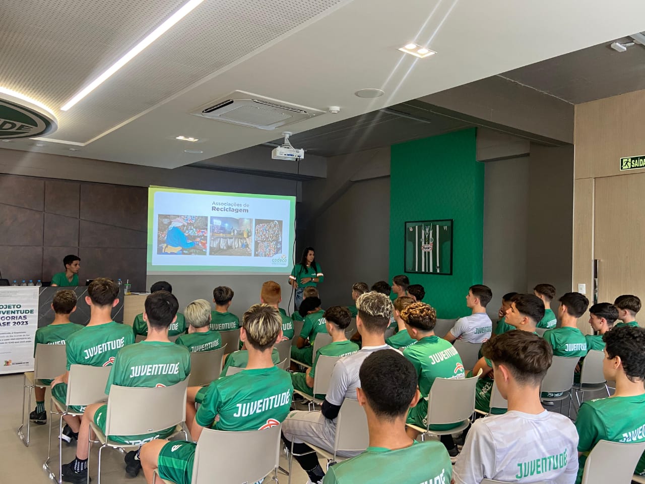O projeto Educação Ambiental desenvolvido pela Codeca atendeu a 1.196 pessoas no primeiro semestre de 2024, por meio de visitas a escolas, empresas e entidades de Caxias do Sul. O objetivo é conscientizar a comunidade para a prática de atitudes de responsabilidade socioambiental e avançar em direção ao desenvolvimento local sustentável. Para receber a Educação Ambiental, basta agendar pelo WhatsApp 98401.3499 (mensagem de texto ou áudio). Foi o que fizeram 25 escolas e cinco empresas, além do Esporte Clube Juventude e SER Caxias, entre janeiro e junho deste ano.  A Educação Ambiental também esteve presente em eventos como o Aquafest, em fevereiro, no Parque Getúlio Vargas; o Ecofest, em março, no Ecoparque; a Semana do Meio Ambiente e o aniversário de Caxias, ambos em junho, na Praça Dante Alighieri. Para estudantes a partir do terceiro ano do Ensino Fundamental e adultos, a Codeca disponibiliza a palestra \"Caminho dos ResÃduos\", ministrada em entidades, empresas e escolas. É preciso reunir um grupo de no mÃnimo 20 pessoas. Outra opção é o roteiro Caminho dos ResÃduos, uma visita guiada à Codeca, à Estação de Transbordo situada junto ao antigo aterro sanitário de São Giácomo e a uma associação de recicladores. Já para a criançada mais nova (da educação infantil ao segundo ano), a dica é receber a visita do Codequito. Com esse trabalho, a comunidade tem a oportunidade de aprender, na prática, como é feito o descarte correto dos resÃduos orgânicos e seletivos e qual o destino desse material.