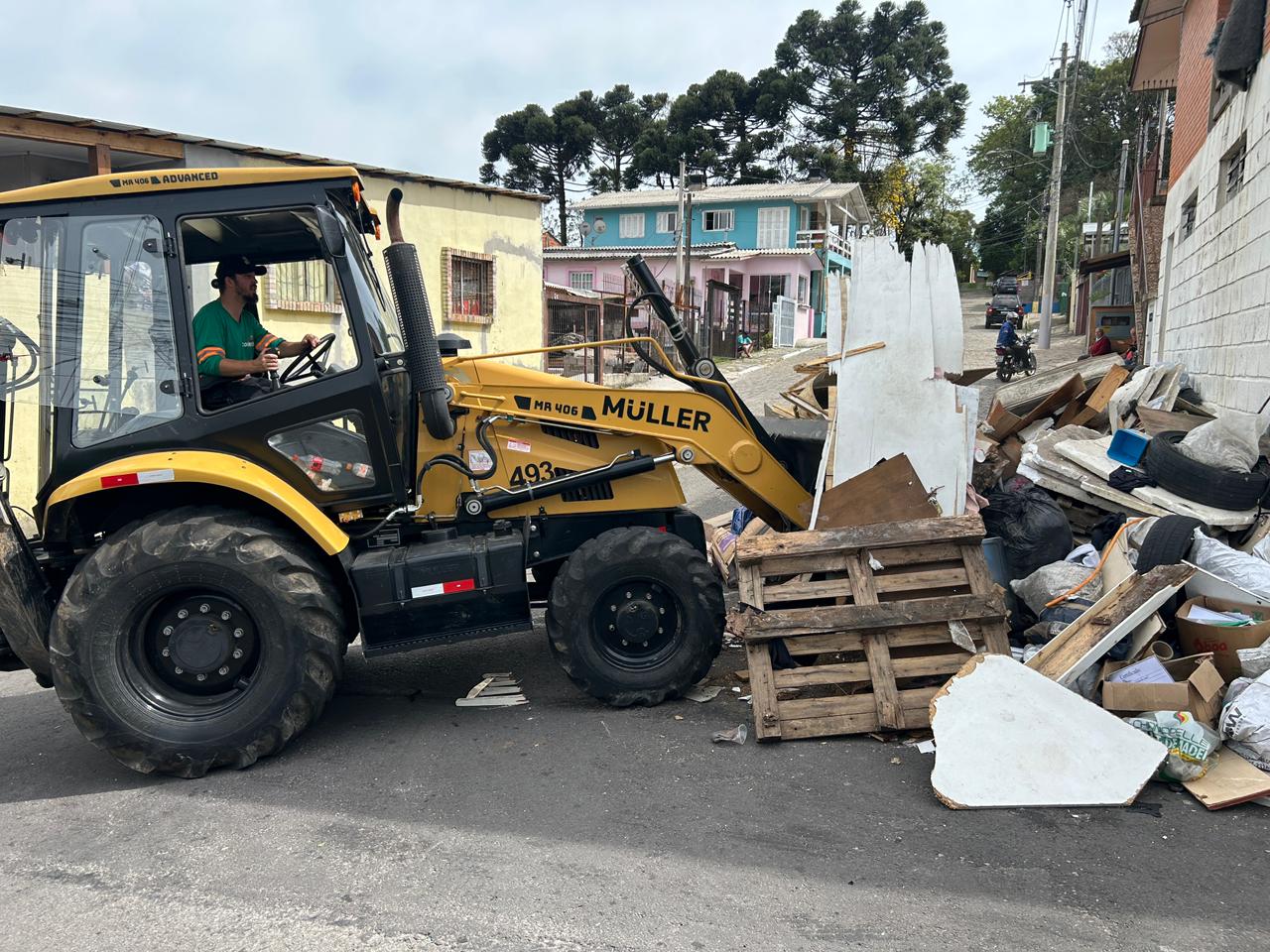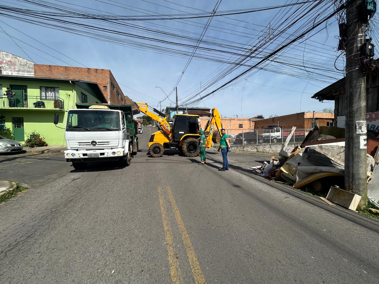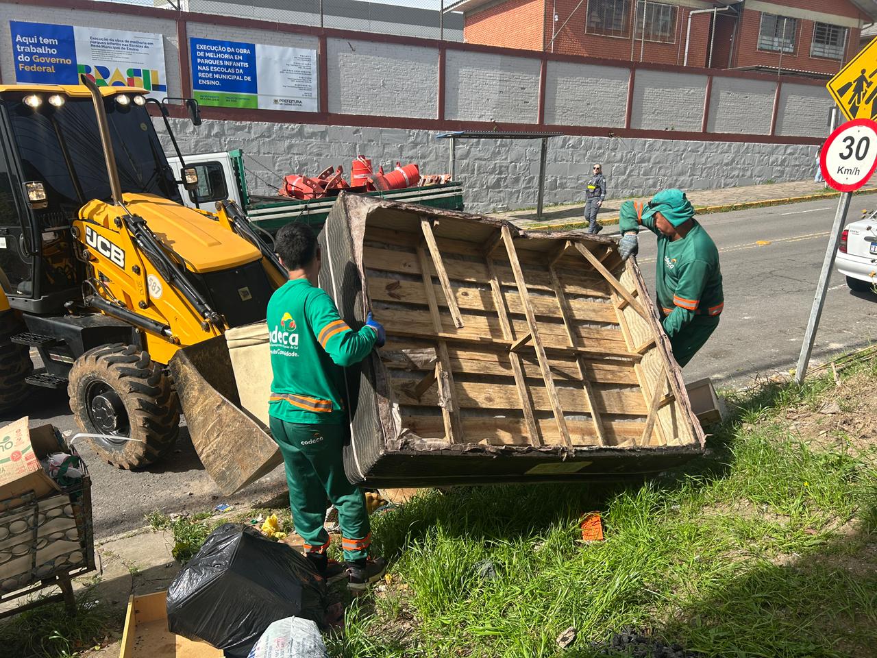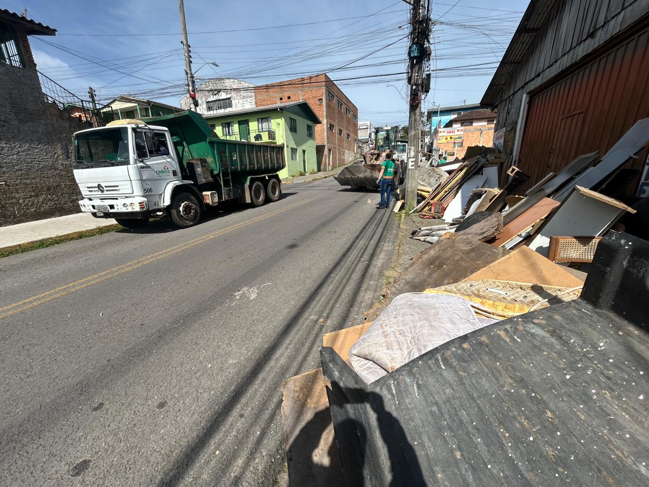 A Prefeitura de Caxias do Sul e a Codeca lançaram neste sábado (25/10) o Programa Caxias Mais Limpa. A ação, que tem a parceria das Associações de Moradores dos Bairros (Amobs), recolheu mais de 300 toneladas de resíduos com a limpeza de lixões e a retomada do bota-fora da Codeca. As equipes também realizaram poda de árvores e recolhimento de galhos nas áreas verdes. Os trabalhos na Zona Norte iniciaram às 8h com a limpeza dos lixões (locais de descartes irregulares) das ruas Olímpio Susin e Jacob Susin, no Portal da Maestra, totalizando 250 toneladas de resíduos recolhidos. Após a limpeza, foram instaladas placas de “Proibido Colocar Lixo” com telefones de denúncia e câmeras de monitoramento. Durante todo dia o bota-fora da Codeca recolheu grandes itens descartados pela comunidade nas ruas principais dos bairros, como pneus, móveis, colchões, sofás, entre outros, num montante de 60 toneladas de material que a coleta normal não recolhe. As equipes da Secretaria de Gestão Urbana realizaram 13 podas com a limpeza de galhos e levantamento de copas das árvores no entorno da UBS Santa Fé. O diretor-presidente da Codeca, Milton Balbinot; e o diretor de Operações, Angelo Barcarolo, acompanharam o prefeito Adiló Didomenico na ação. O chefe do Executivo conclamou a ajuda da comunidade para preservação da limpeza dos locais de descartes irregulares. “Estou aqui diante de uma triste realidade. Enquanto nós tivermos seres humanos que não têm responsabilidade com o meio ambiente, que continuam jogando lixo, não vai resolver a situação. Ou a comunidade colabora conosco, ou não adianta a gente reclamar do meio ambiente,das enchentes, dos temporais. A natureza devolve aquilo que nós fazemos para ela. Portanto, eu deixo aqui o meu apelo e a sincera convicção que nós podemos mudar essa realidade. É uma responsabilidade de todos nós, não é apenas do Poder Público”, sintetizou. As secretarias envolvidas foram do Meio Ambiente e Sustentabilidade (Semmas), de Gestão Urbana, de Obras (SMO), de Trânsito, Transportes e Mobilidade (SMTTM), da Segurança Pública e Proteção Social (Guarda Municipal) e da Agricultura, Pecuária e Abastecimento (Smapa), alémda Coordenadoria de Relações Comunitárias. Está em avaliação a realização do Caxias Mais Limpa no próximo sábado (1?/11) nos bairros Cânyon, Vila Ipê e Colina do Sol.