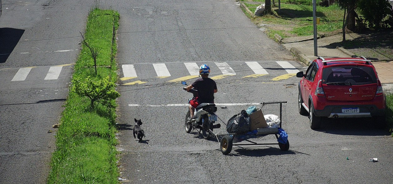 A fiscalização contínua da Secretaria Municipal do Meio Ambiente e Sustentabilidade (Semmas) em áreas de descarte irregular de resíduos, dentro do programa Caxias Mais Limpa (integrado pela Codeca), flagrou um homem de moto com descarte descartando material irregularmente na Rua Jacob Susin, no loteamento Portal da Maestra, na Zona Norte de Caxias do Sul. O fato ocorreu no dia 5 de novembro. O local foi limpo na primeira ação do programa, realizada no dia 25 de outubro. Com o flagrante, a Guarda Municipal da Secretaria de Segurança Pública e Proteção Social e a Fiscalização de Trânsito da Secretaria de Trânsito, Transportes e Mobilidade, passaram a monitorar o veículo que foi localizado um dia depois no bairro Santa Fé. Na ocasião, o proprietário foi autuado e o veículo recolhido. Fotos: Semmas/Divulgação