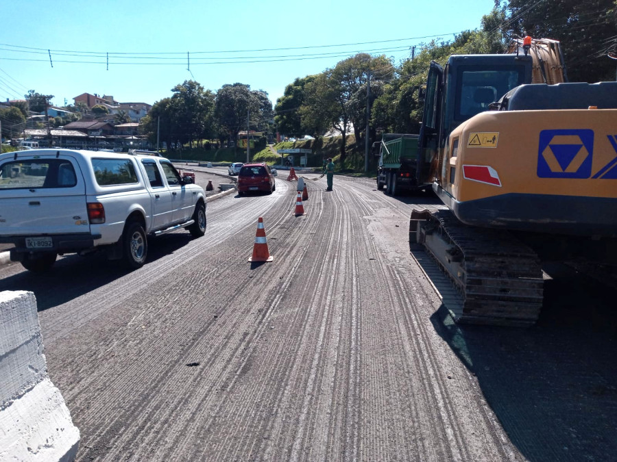 A primeira etapa da obra teve a instalação de tubos de drenagem com diâmetro de 1m20cm na lateral da rodovia, numa extensão de 180m no sentido bairros Ana Rech-Galópolis. Essa fase foi concluída. Agora as equipes atuam no sentido contrário, quando são feitas escavações num trecho de 120m, porém, com profundidade de até 6m devido à tubulação de gás que passa pela estrada.