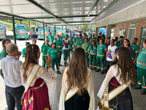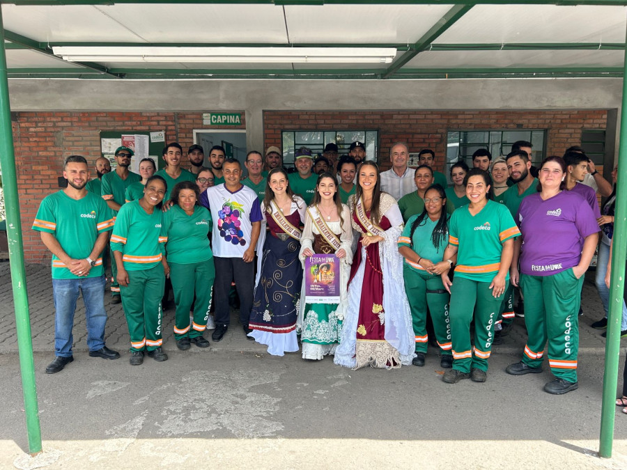 Na ocasião, o grupo visitou os setores de Coleta e Capina, no momento da troca de turnos. Eduarda, Evelen e Jovana agradeceram pelo trabalho e dedicação dos colaboradores em atuar na limpeza de Caxias do Sul e convidaram todos a participarem da Festa, que ocorrerá no Parque de Eventos de 19 de fevereiro a 8 de março.