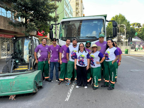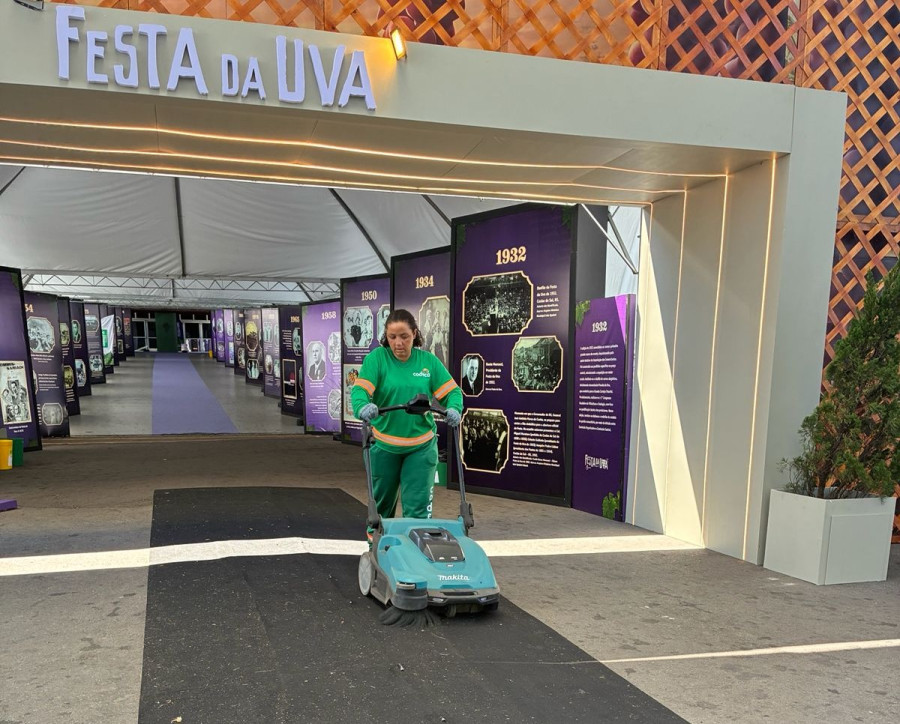 Servidores da Companhia de Desenvolvimento de Caxias do Sul (Codeca) trabalham na limpeza e recolhimento de resíduos durante a 35ª Festa Nacional da Uva. Ainda no começo de fevereiro, duas semanas antes do início do evento, equipes de roçada e capina estiveram dentro e no entorno do Parque de Eventos Mário Bernardino Ramos para garantir a manutenção dos espaços.