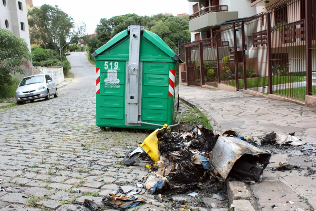 Oito contêineres amarelos com perda total, e um com perda parcial. Esse foi o saldo da maior ação de vandalismo desde a implantação do sistema de conteinerização, ocorrida na madrugada desta segunda-feira, em Caxias do Sul. Na madrugada de sábado, outro recipiente havia sido queimado na região central da cidade. Os 10 recipientes foram incendiados, resultando em um prejuÃzo superior a R$ 10 mil apenas em equipamento. Com as ações do final de semana, o número de contêineres que foram alvo de ataques subiu para 157. Até agora, a CODECA – Companhia de Desenvolvimento de Caxias do Sul já perdeu 72 contêineres amarelos e 21 verdes. Outros 10 recipientes amarelos e 52 verdes tiveram danos parciais deste a implantação, em agosto de 2007. Confira as ações deste final de semana: Madrugada de segunda-feira Perda total Rua Visconde de Pelotas, na esquina com a Rua Dal Canalle Rua Antônio Prado, na esquina com a Rua Garibaldi Rua Independência, 1.758 Rua Silveira Martins, 1.871 Rua Silveira Martins, 1.600 Rua General Câmara, 1716 Rua General Câmara, 1767 Rua General Câmara, 1821 Perda parcial Rua Tronca, 2.671, perto da Rua Garibaldi Madrugada de sábado Perda total Avenida Sinimbu, próximo a esquina da Rua Coronel FloresFotos: Luiz Carlos Erbes / Codeca