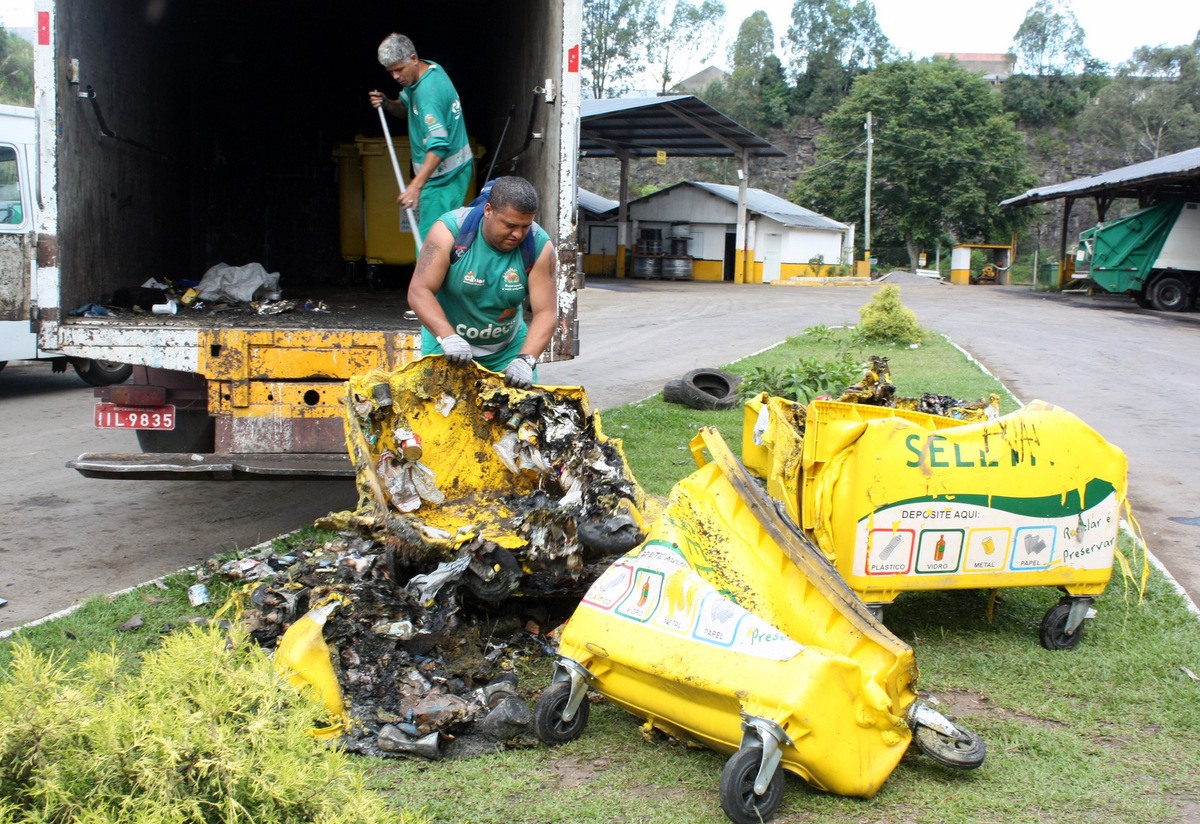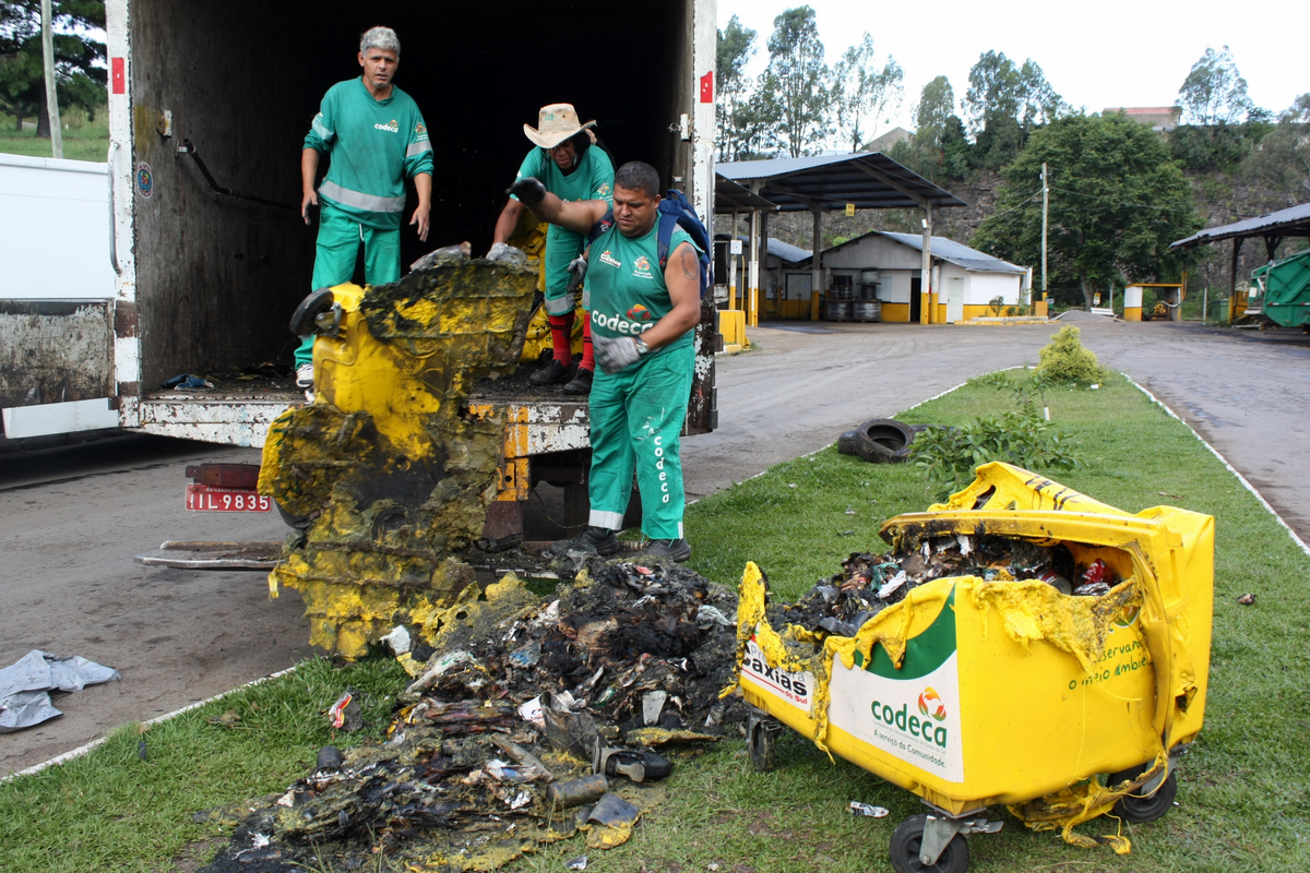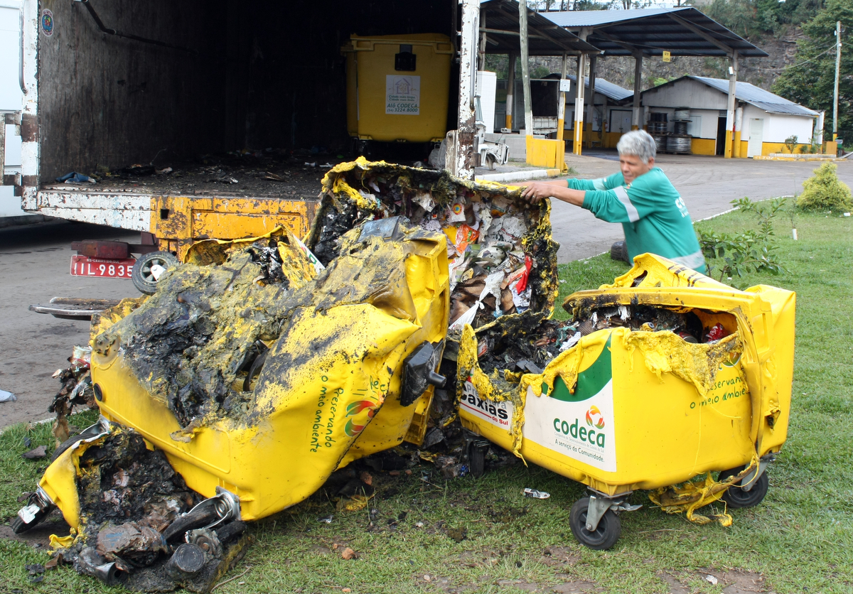 Uma reunião, na tarde desta segunda-feira, discutiu medidas para tentar coibir os atos de vandalismo contra os contêineres. Só nesta madrugada, oito contêineres amarelos foram destruídos em incêndios e um teve danos parciais, no maior ataque contra o sistema implantado pela CODECA – Companhia de Desenvolvimento de Caxias do Sul em agosto de 2007. Apenas considerando os equipamentos, o prejuízo estimado com as 157 ações é de cerca de R$ 153 mil. A reunião contou com a presença da direção da CODECA, do secretário de Segurança Pública e Proteção Social, coronel Roberto Soares Louzada, e representantes da Guarda Municipal, Brigada Militar e Polícia Civil. Ficou definida uma ampliação do trabalho preventivo, buscando inibir os ataques e tentando obter o flagrantes dos vândalos. “Foi uma reunião muito proveitosa, saímos satisfeitos com as ações programadas pela Polícia Civil, Brigada Militar e Guarda Municipal”, declarou Adiló Didomenico. “Não é possível que uma comunidade ordeira e caprichosa como a de Caxias do Sul tenha que se dobrar a vândalos e desordeiros, possivelmente do crime organizado que está por trás disso.” Além do trabalho preventivo, a Codeca, a Guarda Municipal, Brigada Militar e Polícia Civil solicitam o apoio da comunidade. Em caso de atitude suspeita, o morador deve entrar em contato com a Brigada Militar (telefone 190) ou Guarda Municipal (153). Empresas com sistemas de monitoramento com câmera de vídeo que flagrarem algum incidente também podem colaborar, entrando em contado com a companhia, pelos telefones 3224-8000 e 3224-9300. Fotos: Luiz Carlos Erbes / Codeca