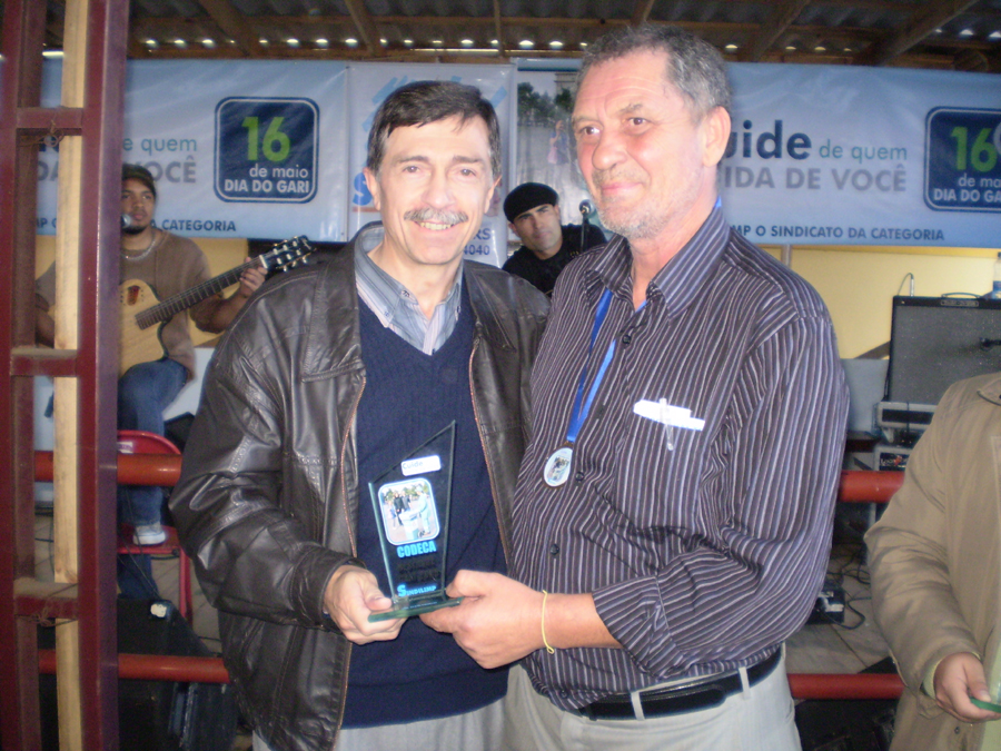 Diversas famílias de colaboradores da CODECA e outras empresas participaram neste domingo (17/05) de um dia de lazer na sede do Sindicato dos Metalúrgicos, em Caxias do Sul. Durante todo o dia, atividades esportivas e culturais marcaram o encerramento da Semana do Gari 2009, promovida pelo Sindilimp em parceria com a CODECA, Prefeitura e Câmara de Vereadores. No período da manhã, foram disputadas competições esportivas. À tarde, houve shows com talentos da CODECA, como os grupos de hip hop Éfeso e Dikaios, Vitrine do Samba (pagode) e os convidados especiais Herança Gaúcha e Gaúcho Lacerda, entre outros. As crianças aproveitaram o dia de sol para se divertir com a estrutura da Secretaria de Esporte e Lazer (SMEL). Eles pularam na cama elástica, fizeram tatuagens coloridas e se divertiram com o Ônibus Brincalhão. No final da tarde, dirigentes do Sindilimp entregaram o Troféu Gari 2009 a entidades apoiadoras da Semana. O Diretor-presidente da CODECA, Adiló Didomenico, foi um dos contemplados. Colaboradores e outras pessoas que auxiliaram na organização da Semana receberam medalhas. Fotos: Divulgação/ CODECA Assessoria de Imprensa 18.05.2009