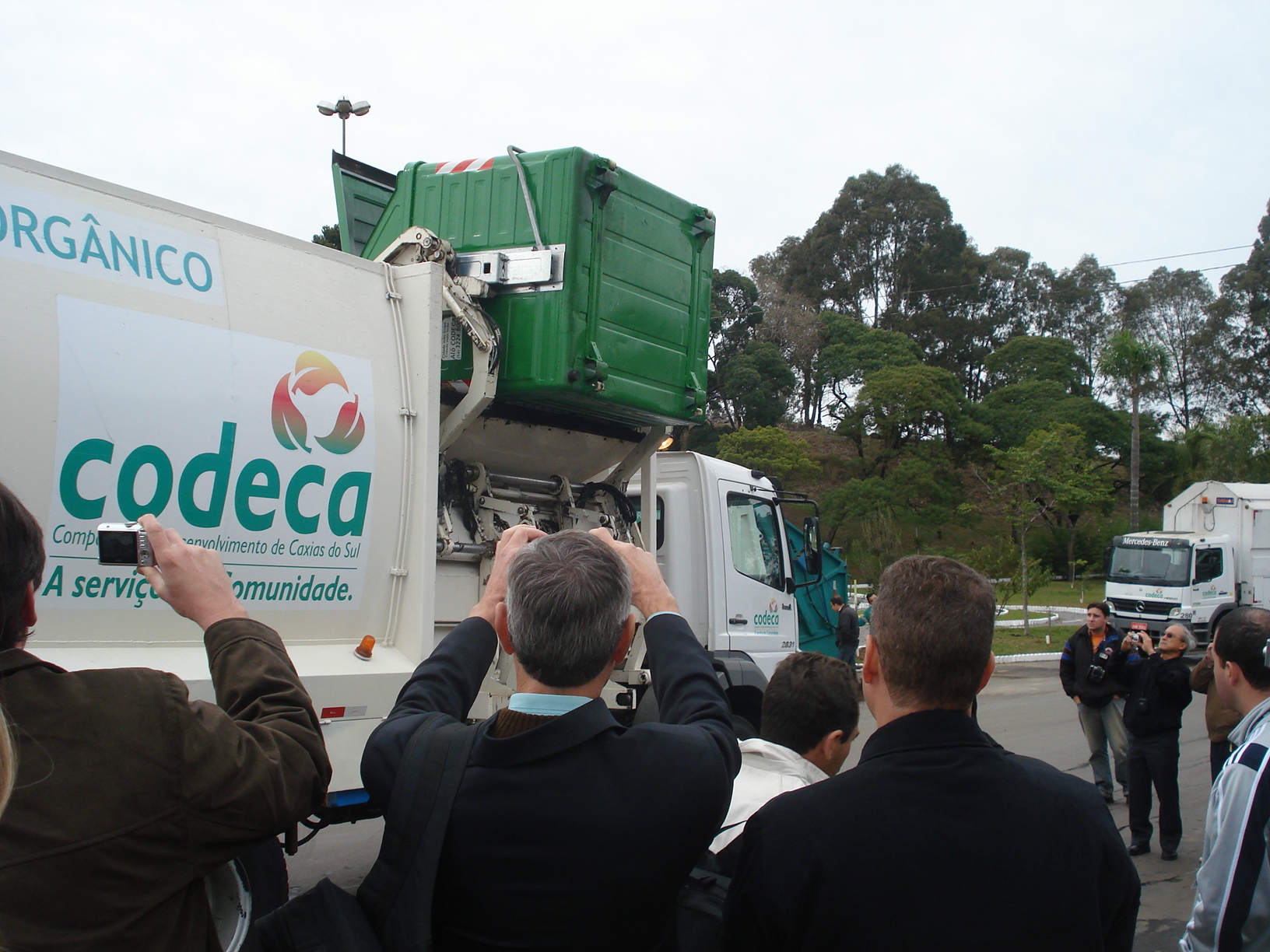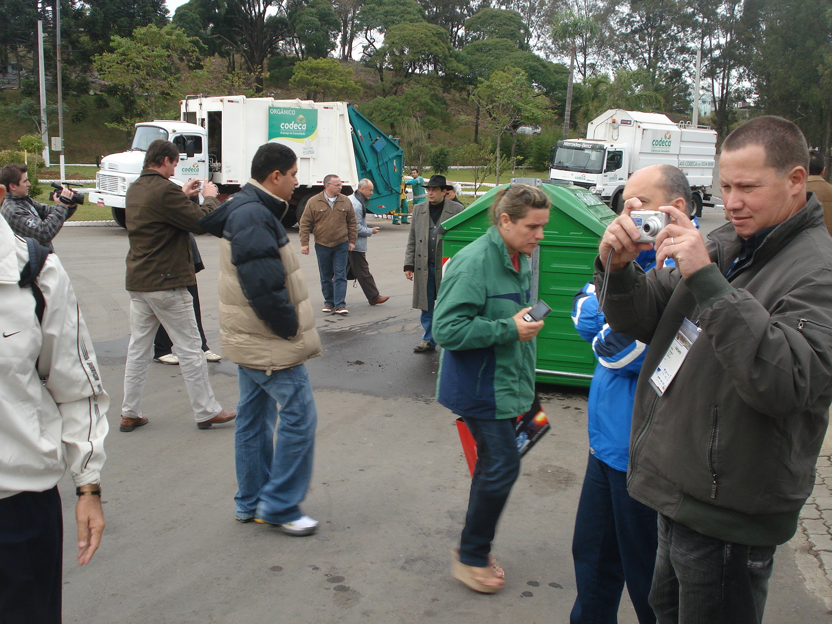 Técnicos e pesquisadores de diversos estados brasileiros conheceram de perto, nesta sexta-feira (29.05), a coleta mecanizada de lixo implantada em Caxias do Sul a partir de 2007. O sistema, pioneiro do País, foi destaque durante a visita técnica que marcou o encerramento da 39ª Assembléia Nacional da Associação dos Serviços Municipais de Saneamento (ASSEMAE). O evento aconteceu em Gramado, ao longo da semana.A visita técnica integrou a programação oficial do encontro. O roteiro começou pelo pátio da CODECA, onde integrantes do Departamento de Limpeza Urbana (DLU) realizaram uma demonstração do sistema de contêineres. Os visitantes se mostraram muito interessados e perguntaram ao Diretor-presidente Adiló Didomenico detalhes sobre o funcionamento do sistema. Eles também receberam kits com informações sobre a coleta mecanizada e os programas ambientais da CODECA. Depois, o grupo visitou o Aterro Sanitário São Giácomo. A segunda parte do roteiro incluiu obras de saneamento e foi monitorada por técnicos do SAMAE. Desde o dia 24 deste mês, a 39ª Assembléia da ASSEMAE reuniu cerca de 1,5 mil profissionais, acadêmicos, gestores públicos, prestadores de serviços, pesquisadores e estudantes. O encontro foi realizado no centro de eventos da Faurgs, em Gramado, e teve como tema central “Saneamento Ambiental: ferramenta para integrar a gestão da cidade”.Fotos: Tiago TessariDepartamento de Comunicação CODECA 29.05.2009