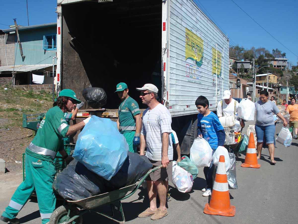 A Companhia de Desenvolvimento de Caxias do Sul (CODECA) promoveu neste fim de semana ações do Troca Solidária nos bairros Cânyon, Fátima Baixo, Monte Carmelo e Villa-Lobos. No Monte Carmelo, o programa recebeu um visitante especial: o Frei Jaime Bettega, que, a convite da Direção da CODECA, conferiu de perto a iniciativa pela qual é possível trocar quatro quilos de resíduo seletivo por um quilo de alimentos. O caminhão do Troca Solidária chegou ao Monte Carmelo por volta das 13h30min de sábado (29.08). Logo, diversos moradores começaram a trazer resíduos seletivos para trocar por hortigranjeiros (repolho, cenoura e bergamotas). Desde que foi implantado, em junho deste ano, o programa já beneficiou cerca de 1,8 mil famílias, distribuindo mais de 8,7 toneladas de alimentos em troca de 31,5 toneladas de resíduos. Todo o material reciclável recolhido é destinado às nove associações de recicladores do Município.Atento, frei Jaime acompanhou o trabalho da equipe da CODECA e elogiou a iniciativa. Para ele, é positivo quando as pessoas são incentivadas a adotar uma atitude cidadã - como recolher o resíduo seletivo, para só então trocá-lo pelo alimento. Reconhecido por diversos membros da comunidade, o religioso deu atenção a todos, em especial às crianças que o abordavam.O Programa Troca Solidária começou a ser formatado depois de uma ação da CODECA na Vila Esperança (região do Rizzo), em 2006. Durante apenas algumas horas, imenso volume de resíduos foi retirado do local. “Avaliando a situação, pensamos numa forma de estimular as pessoas a ajudarem no recolhimento dos resíduos, evitando o acúmulo de material e, além disso, reduzindo despesas com funcionários e equipamentos”, lembra o Diretor Presidente da CODECA, Adiló Didomenico.Depois de aprovado pela Câmara de Vereadores, o Programa Troca Solidária foi sancionado pelo Prefeito José Ivo Sartori no ano passado. Na ocasião, o Prefeito afirmou que iniciativas como essa “podem parecer simples e singelas até, mas representam muito, pois vão beneficiar desde os agricultores, passando pelas associações de recicladores, famílias carentes e, acima de tudo, o meio ambiente”. Depto. De Comunicação e Marketing CODECA31.08.2009