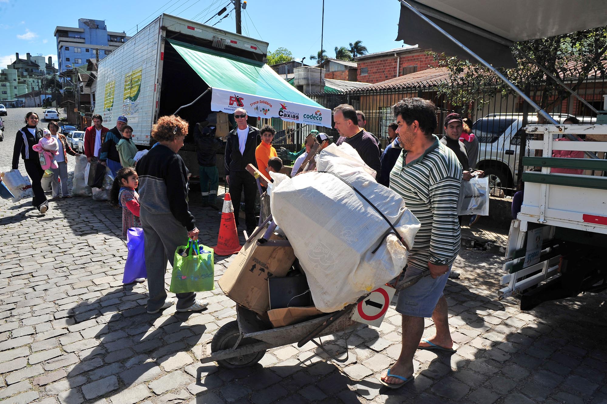 A Companhia de Desenvolvimento de Caxias do Sul (CODECA) expandiu o Programa Troca Solidária para o bairro 1º de Maio durante o final de semana. O caminhão do Troca Solidária estacionou em frente ao Centro Comunitário das 10h30min ao meio-dia. Em uma hora e meia, os moradores trocaram 1,16 tonelada de resíduos seletivos por 290 quilos de maçã, beterraba e laranja.No mesmo fim de semana, o programa atendeu comunidades do Planalto, Kayser e Loteamento Conquista. Ao todo, somente no sábado (19.09), foram recolhidas 2,5 toneladas de resíduo e distribuídos em troca 626 quilos de hortigranjeiros. No total, cerca de duzentas familias foram beneficiadas.O Troca Solidária acaba de completar três meses. Desde a implantação, no dia 20 de junho, o programa já recolheu 37,6 toneladas de resíduos seletivos e distribuiu em troca 10,2 toneladas de hortigranjeiros de qualidade produzidos no interior do Município. Mais de duas mil famílias foram beneficiadas e todo o resíduo foi destinado para associações de recicladores. Cronograma Troca Solidária para sábado (26/09): Canyon - das 8h30min às 10h, no retorno do ônibus Fátima Baixo – das 10h30min ao meio-dia, em frente à igreja católica Monte Carmelo – das 13h30min às 15h, na rua Salete Gonzatto, ao lado do Mercado Multi Real Villa-Lobos – das 15h30min às 17h, ao lado da escola. Fotos: Luiz Chaves (bairro 1º de Maio) Depto. de Comunicação e Marketing CODECA 21.09.2009