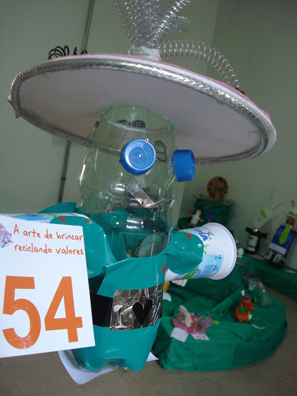 Brinquedos de resíduos recicláveis estão em exposição no Centro Cultural Ordovás