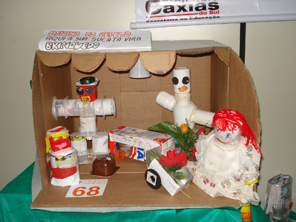 A Companhia de Desenvolvimento de Caxias do Sul (CODECA), em parceria com a Secretaria Municipal de Educação (SMED), promove até o dia 25/10 uma exposição de brinquedos feitos de resíduos recicláveis. Eles foram produzidos por alunos da Rede Municipal de Ensino, que participam do 2º Projeto Arte de Brincar Reciclando Valores. Os brinquedos podem ser conferidos no saguão do Centro de Cultura Dr. Henrique Ordovás Filho, de segunda a sexta, das 9h às 21h, e aos sábados, domingos e feriados, das 15h às 21h. Quem visitar a exposição pode votar nos brinquedos preferidos, sendo um de cada modalidade (3º ano/ 4ª série ou 5º ano). Os mais votados serão premiados no dia 29 deste mês, às 14h, no CTG da CODECA, durante evento de encerramento oficial do projeto. Os alunos vencedores vão ganhar aparelhos de som, e laptops Ben 10 e mochilas bem 10. Os professores orientadores serão premiados com presentes personalizados e as escolas receberão minisystems. Cerca de 40 brinquedos foram inscritos no projeto, entre eles fantoches, caminhões, bonecos e até um miniparque de diversões. “O objetivo da iniciativa é estimular atividades educativas ligadas à arte e, ao mesmo tempo, propor uma reflexão sobre a separação do lixo e destinação dos resíduos”, explica o Diretor Presidente da CODECA, Adiló Didomenico. Na última sexta-feira (16/10), foi realizada na Feira do Livro a cerimônia de premiação do 2º Projeto Literário Consciência Ambiental. Estudantes da rede municipal ganharam prêmios e certificados pela elaboração de textos sobre tratamento e destinação do lixo. Os projetos ambientais têm apoio das secretarias municipais do Meio Ambiente e Cultura, com patrocínio do Simplás. Fotos: Alexandra Baldisserotto 20/10/2009 Depto. de Comunicação e Marketing CODECA