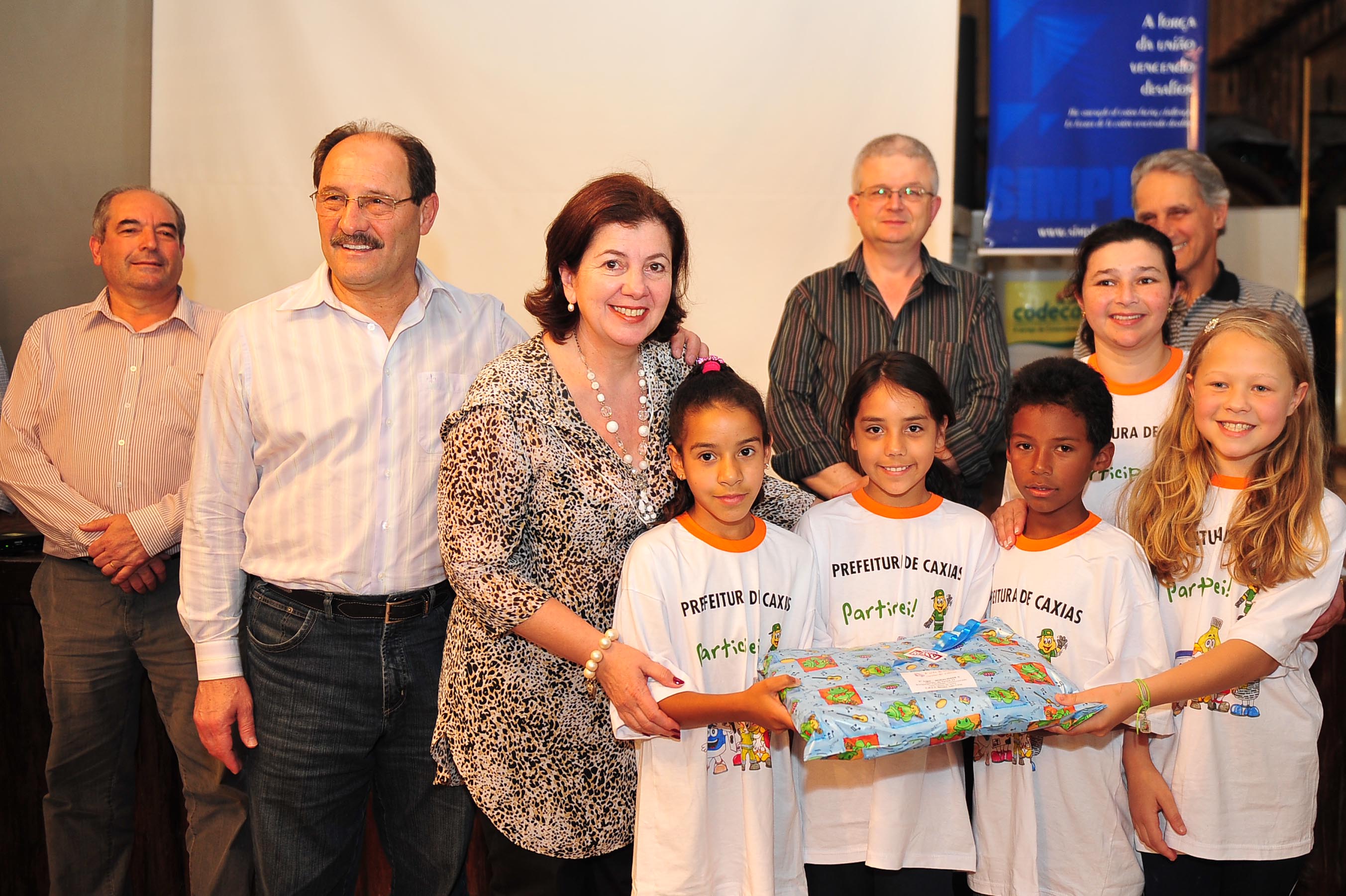 A Companhia de Desenvolvimento de Caxias do Sul (CODECA), em parceria com a Secretaria Municipal de Educação (SMED), promoveu nesta quinta-feira (29/10) a cerimônia de premiação dos brinquedos feitos de resíduos recicláveis no 2º Projeto Arte de Brincar Reciclando Valores. Prêmios e certificados foram entregues no CTG da CODECA pelo Prefeito José Ivo Sartori; diretor-administrativo da CODECA, José Luiz Zechin; secretário da Educação, Edson da Rosa; e presidente do Simplás, Orlando Marin. Também participaram da solenidade a primeira dama, Maria Helena Sartori, secretário do Meio Ambiente, Adelino Teles; reitor em Exercício da UCS, José Carlos Avino, além de diretores, professores e alunos de diversas escolas da Rede Municipal de Ensino (RME). Entre os prêmios entregues, estão minisystems, laptops Ben 10 e mochilas Ben 10. Os professores orientadores ganharam presentes personalizados e, assim como os três primeiros lugares, receberam certificados. Os brinquedos classificados em primeiro, segundo e terceiro lugares em cada modalidade (confira abaixo) passarão a integrar o acervo do Museu do Lixo, nos Pavilhões da Festa da Uva. Cerca de 40 brinquedos criativos foram inscritos nesta edição do projeto. O Prefeito Sartori interagiu com as crianças, contando sobre os brinquedos de antigamente e ressaltando a importância do resgate de valores no momento de brincar. “Ao construir brinquedos de material reciclável, vocês estão fazendo isso e também estão plantando sementes para aqueles que virão depois. Só a união de todos pode garantir a proteção do meio ambiente”, afirmou. O diretor José Luiz Zechin agradeceu a todas as escolas pela participação no projeto, com destaque para os professores. “Vocês são os grandes parceiros do Poder Público no desenvolvimento das ações de educação ambiental”, frisou. O secretário Edson da Rosa também se manifestou, parabenizando alunos, professores e diretores pelos trabalhos. Depois da premiação, todos saborearam lanche com direito a cachorro-quente. Em seguida, alunos e professores fizeram o passeio Caminhos do Lixo, pelo Aterro Sanitário São Giácomo e Museu do Lixo. Os projetos ambientais Consciência Ambiental e Arte de Brincar são uma parceria entre CODECA e Secretaria Municipal da Educação (SMED), com apoio das secretarias municipais do Meio Ambiente e Cultura, e patrocínio do Simplás. Resultado da Premiação: I – MODALIDADE 1 - : 3º ANO DO ENSINO FUNDAMENTAL 1º LUGAR: Escola Municipal de Ensino Fundamental Madre Assunta, com trabalho Filhote de Porquinho, dos alunos Gabriel Fischer e Lisandra da Rosa Prestes. Professora orientadora: Ione Arbugeri Diretora: Salete Mari da Rosa Peres 2º LUGAR: Escola Municipal de Ensino Fundamental Oswaldo Cruz, com trabalhos de diversos alunos: Brinquedos Variados. Os trabalhos foram realizados sob a orientação das professoras Magda Mano e Suzana Bonan. Diretora: Miriam de Fátima Brochetto 3º LUGAR: Escola Municipal de Ensino Fundamental Prof. Nandi, com trabalhos da turma do Terceiro Ano/ turno da tarde: Bilboquês de PET, bola de PET e Vestido de PET para bonecas de desfile. Os trabalhos foram realizados sob a orientação do professor JOSÉ VALTER. Diretora da Escola: Rosimeri Maria Scopel 2ª MODALIDADE: 4ª SÉRIE OU 5º ANO DO ENSINO FUNDAMENTAL TERCEIRO LUGAR: Escola Municipal de Ensino Fundamental Renato João Cesa, com trabalho da turma 32: Caminhão confeccionado com caixas de leite longa vida. Professora: Angelita Barbosa Diretora da Escola: Suzana Catarina Bampi SEGUNDO LUGAR: Escola Municipal de Ensino Fundamental Padre Antonio Vieira, com trabalho da aluna Cristina Trentin de Vilasboa, da turma 42 da Quarta Série: Casinha de Bonecas. Os trabalhos foram realizados sob a orientação da professora ELIANE KNAPP. Diretora da Escola: Judite Elisa Paim PRIMEIRO LUGAR: Escola Municipal de Ensino Fundamental Catulo da Paixão Cearense, com os trabalhos “Monstrinhos”, dos alunos Gabriela Alves Wisnieski e Artur Elias Nunes Neukamp, da turma 41, da 4ª Série. Professora: Marinez Sebben Diretora: Anelice Comerlato Fotos: Luiz Chaves (cerimônia) e Caroline Boeira Dalzochio (aterro sanitário) 29/10/2009 Depto. de Comunicação e Marketing CODECA