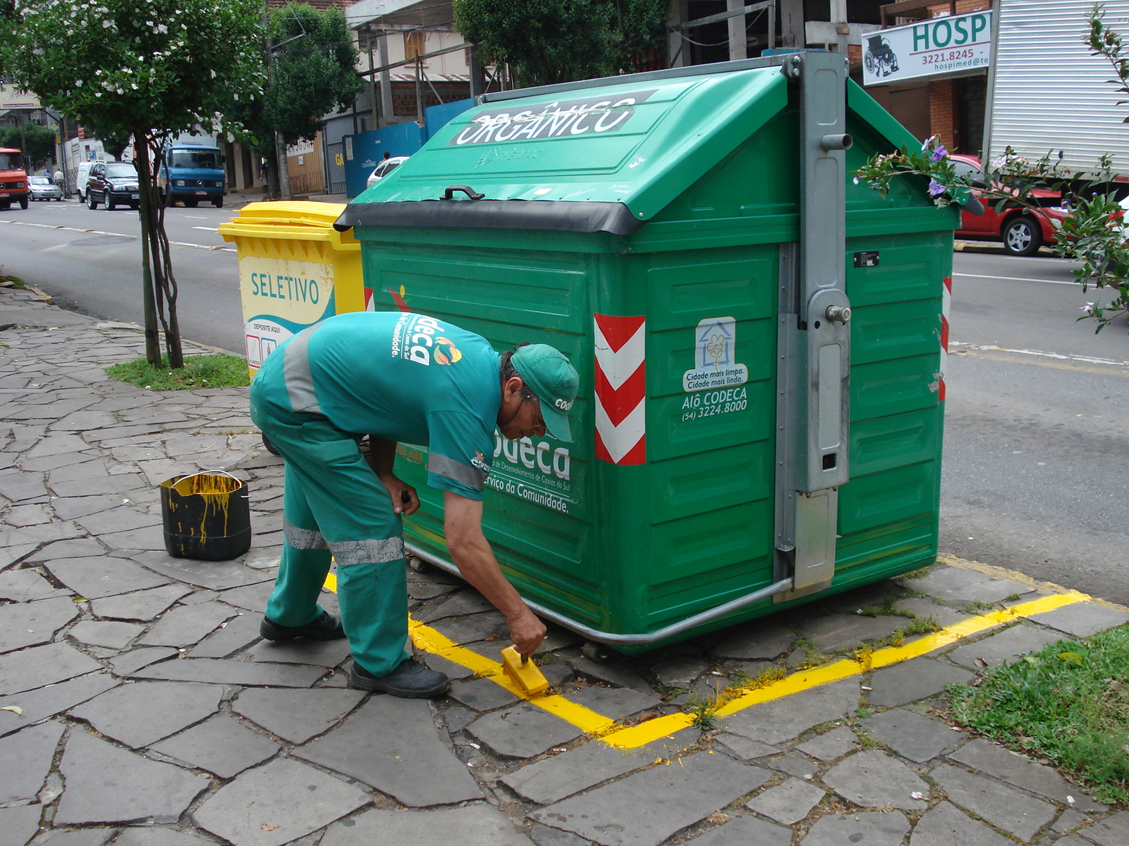 A Companhia de Desenvolvimento de Caxias do Sul (CODECA) está pintando faixas amarelas nas ruas e calçadas para marcar o posicionamento correto dos contêineres de lixo. Nesta sexta-feira (06.11), equipes da Companhia realizam o serviço de pintura na rua Pinheiro Machado, de Lourdes em direção a São Pelegrino. Se não chover nos próximos dias, a meta é assinalar todos os espaços até o fim do mês. A marcação vai permitir manter permanentemente o posicionamento correto dos contêineres para o momento da coleta com o caminhão. As equipes de varrição serão orientadas a auxiliar na fiscalização do local correto dos contêineres. “Além disto, qualquer cidadão que encontrar uma unidade deslocada pode comunicar a CODECA pelo telefone 3224-8000”, explica o Diretor Presidente, Adiló Didomenico. Atualmente existem mil contêineres verdes (orgânico) e mil amarelos (seletivo) nas ruas da cidade. Na primeira metade de 2010, o sistema será ampliado para mais cinco bairros (Petrópolis, Cinquentenário, Santa Catarina, Panazzollo e parte da Colina Sorriso). Serão 400 novas unidades verdes e outras 400 amarelas, sendo que todo o sistema (atualmente locado) será de propriedade da CODECA. A cidade passará a ter coleta mecanizada em 230 novas quadras, abrangendo no total uma população de 165 mil pessoas. Fotos: Alexandra Baldisserotto Depto. de Comunicação e Marketing CODECA 06.11.2009