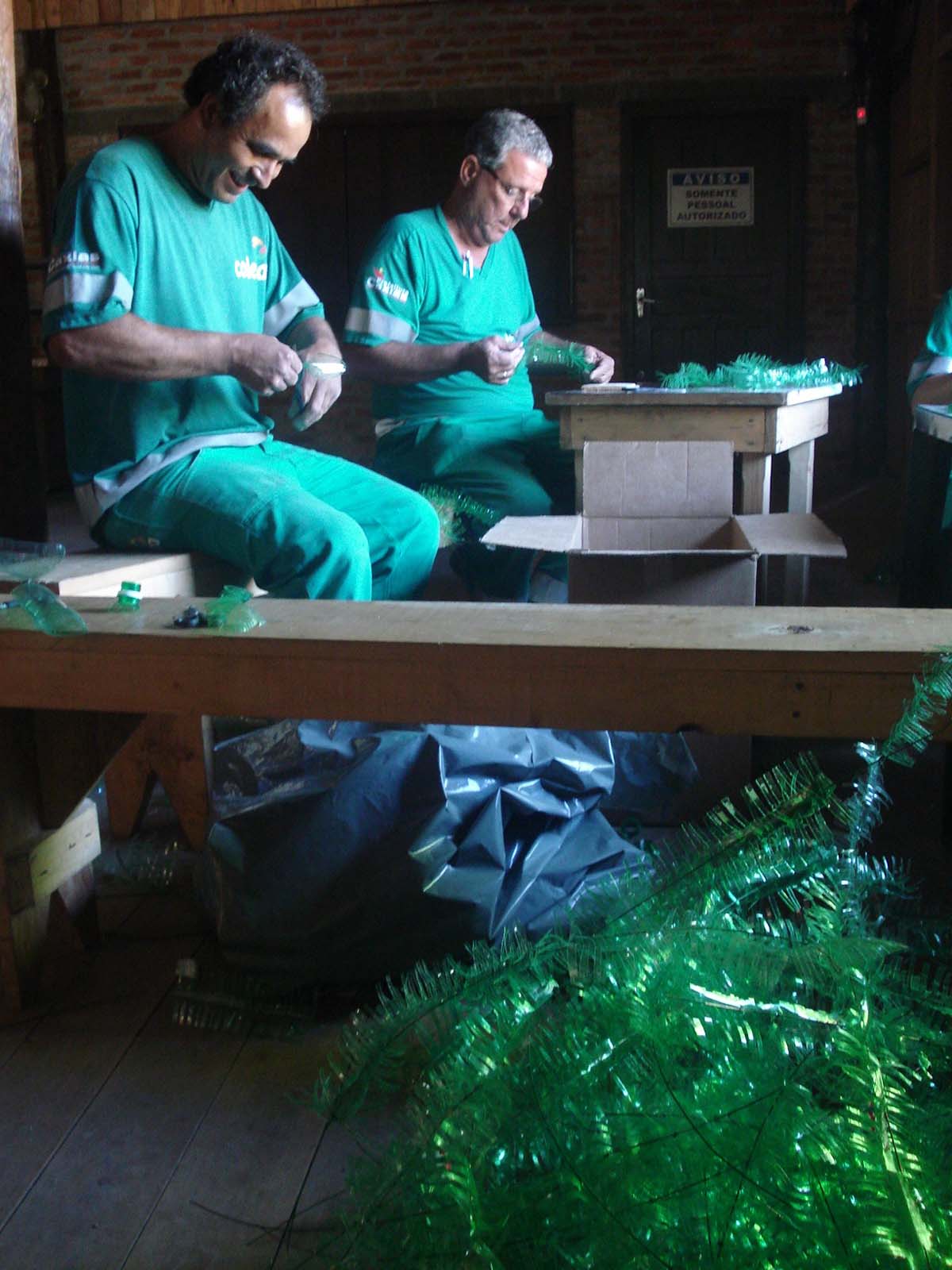 A Companhia de Desenvolvimento de Caxias do Sul (CODECA) está montando, no pátio da empresa, Presépio e Árvore de Natal construídos a partir de materiais recicláveis. O trabalho artesanal foi realizado por colaboradores voluntários, que produziram festão de garrafas PET e espaço para manjedoura com vassouras usadas. A decoração será finalizada na segunda-feira (14/12), às 9h30min, com a participação de pessoas da Melhor Idade atendidas pela Sociedade Caxiense de Auxílio aos Necessitados (SCAN).A ideia da reutilização dos materiais surgiu das equipes da Gerência de Infraestrutura. A manjedoura foi coberta por palha reaproveitada de vassouras velhas, usadas pelo pessoal da Varrição. O festão de PET para a árvore de Natal foi sugestão de colaboradores que já possuiam conhecimentos de artesanato. Nos galhos do pinheiro, foram reutilizados cabos de vassouras. Os personagens do Presépio foram feitos de sacos de linhagem.Todos os anos a CODECA convida uma entidade para visitar e ajudar simbolicamente na decoração natalina. Neste ano, a SCAN foi indicada a partir de uma parceria entre o setor de Serviço Social da empresa e Fundação de Assistência Social (FAS). O objetivo é envolver instituições para fortalecer o projeto “CODECA - De mãos dadas com a comunidade”. Depto. de Comunicação e Marketing CODECA