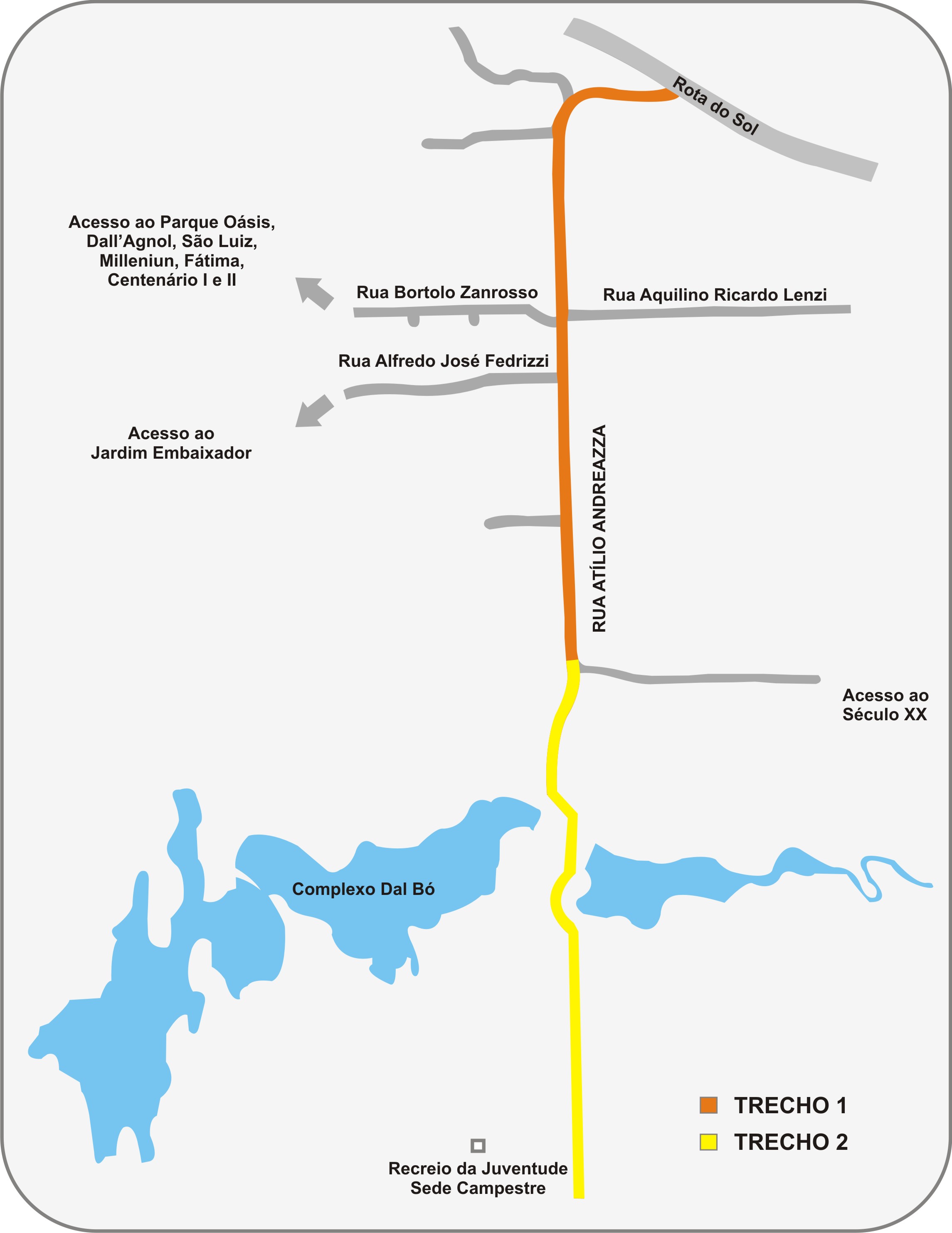 Obra, que será executada pela CODECA, é reivindicada há mais de 30 anos.O Prefeito José Ivo Sartori e o Vice-Prefeito Alceu Barbosa Velho assinam na próxima terça-feira, dia 12 de janeiro, a Ordem de Serviço com início imediato da pavimentação da rua Atílio Andreazza. Esta é a primeira obra da 2ª etapa do Programa de Asfaltamento do Interior. A solenidade acontece às 18h30, em frente à Igreja Nossa Senhora do Rosário. Em caso de chuva, o evento será transferido para o salão da igreja.A intervenção é reivindicada há mais de 30 anos pela comunidade. A obra será executada pela Companhia de Desenvolvimento de Caxias do Sul – Codeca, com um investimento de mais de R$ 2,6 milhões. Serão mais de 20 mil metros quadrados de área pavimentada em 2.560 metros de extensão. Diversos bairros e loteamentos da zona norte de Caxias estão sendo beneficiados, como Nossa Senhora do Rosário, Parque Oásis, Millenium, Centenário I e II, Saint-Ettiene, Nossa Senhora de Fátima, Jardim Embaixador, Dall'Agnol, São Luiz, Século XX e Interlagos.A pavimentação acaba com a poeira e com a lama em dias de chuva, e permite uma nova rota de entrada e saída da cidade, via RSC – 453 (Rota do Sol). Além disso, facilita o escoamento da produção metal-mecânica e agiliza o acesso ao Jardim Botânico, ao Recreio da Juventude, ao Cemitério Parque e à Subestação da CEEE, entre outros pontos. A comunidade também ganha em transporte coletivo. Cinco linhas de ônibus passam pela rua Atílio Andreazza diariamente, como a nº 53 - Oásis/Centenário e a nº 21 - Século XX via 1º de Maio. Isso representa em torno de 18 mil passageiros beneficiados por dia.A Lei Complementar nº 246, que estabelece Conceitos e Funções das Zonas das Águas, precisou ser observada, já que a via atravessa a área de bacia de captação do Complexo Dal Bó. O Serviço Autônomo Municipal de Água e Esgoto (Samae) realizou um minucioso estudo técnico, para que todas as exigências ambientais fossem atendidas. O licenciamento foi dado pela Secretaria Municipal do Meio Ambiente.O projeto da obra foi elaborado pela Secretaria do Trânsito, Transportes e Mobilidade e foi dividido em quatro trechos, sendo que os trechos 1 e 2 contemplam toda a área onde há estrada de chão. O primeiro, com pavimentação em asfalto, compreende desde a rodovia RSC-453, até o entroncamento com um acesso secundário, próximo às represas São Paulo e São Pedro. Deste entroncamento até a Subestação da CEEE, ficou definido o segundo trecho, cuja pavimentação será em paralelepípedos, facilitando inclusive o escoamento da água da chuva. Nos trechos 3 e 4, até a Av. Abramo Randon e até a Rótula Hercilio Randon, respectivamente, as pistas serão alargadas, com canteiro central e pavimentação asfáltica. O projeto também abrange adequações de iluminação e uma ciclovia.A 2ª etapa do Programa de Asfaltamento do Interior contempla 105 quilômetros de asfalto, beneficiando 22 comunidades, em um investimento em torno de R$ 60 milhões. Com a apresentação de bons projetos, a Prefeitura de Caxias do Sul, por meio da Secretaria de Gestão e Finanças, conquistou um empréstimo junto à Confederação Andina de Fomento – CAF, viabilizando a execução das obras. *Obras concluídas: Desde 2005, foram asfaltados mais de 60 quilômetros de estradas, em diversas localidades do município. Os investimentos são superiores a R$ 32 milhões, sendo R$ 12 milhões oriundos de empréstimos e R$ 20 milhões de recursos da Prefeitura de Caxias do Sul. FOTO LUIZ CHAVES Assessoria de Imprensa Prefeitura/CODECA 07/01/2010