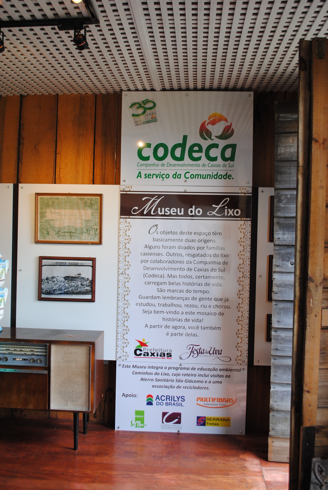 A reabertura oficial do Museu do Lixo acontece neste sábado (20.02), às 15h, na Casa 8 da Réplica, no Parque da Festa da Uva. O espaço foi reformado e recebeu melhorias, incluindo pintura, painéis, nova iluminação e reordenação das fotos e objetos expostos. A visitação segue os mesmos horários de funcionamento do parque (segunda a sexta das 14h às 22h – sábados e domingos das 9h às 22h). O Museu do Lixo tem novidades logo na entrada, onde um grande painel resume aos visitantes a origem dos objetos expostos e as histórias de vida que eles carregam. Cédulas e moedas antigas encontradas no lixo estão expostas em quadros. As paredes ganharam painéis que contam a história dos 35 anos da CODECA, comemorados em 2010. O espaço integra o Programa de Educação Ambiental “Caminhos do Lixo”, cujo roteiro inclui visitas ao Aterro Sanitário São Giácomo e a uma associação de recicladores. Após a Festa da Uva, o Museu permanece disponível para visitas mediante agendamento. Os contatos podem ser feitos pelo telefone 3224-9300. Depto. de Comunicação e Marketing CODECA 19/02/2010