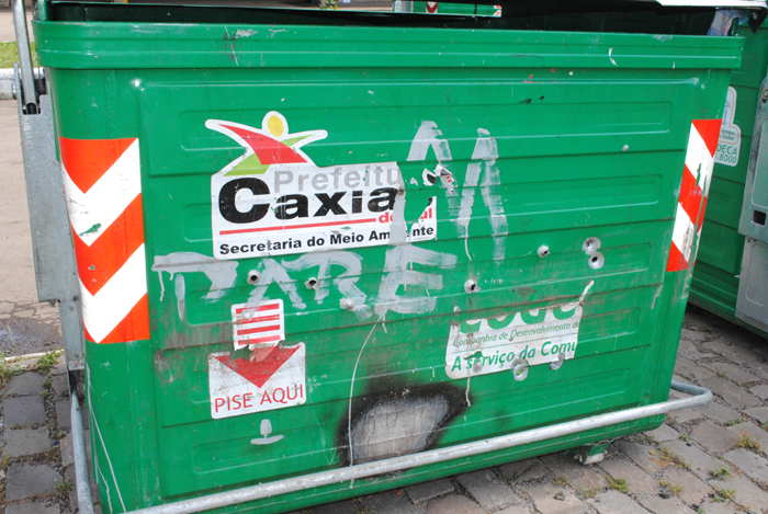 Uma equipe de manutenção localizou um contêiner verde crivado de disparos na rua Pedro Marcarini, esquina com Dom João Batista Scalabrin, nas proximidades do Cemitério Municipal. De acordo com o Departamento de Limpeza Urbana, são 20 perfurações ao todo.O equipamento, encontrado nesta segunda-feira, já foi substituÃdo.O setor de Segurança do Trabalho da CODECA ficou responsável pelo registro da ocorrência. 30/11/2010Depto. de Comunicação e Marketing CODECA