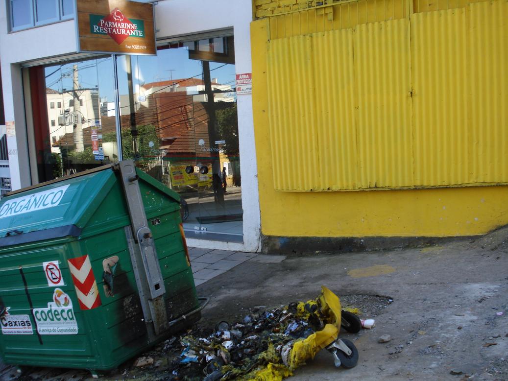 Hoje, segunda feira, (07/03) equipes da CODECA constataram atos de vandalismo ocorridos na madrugada, e encontraram mais três (03) contêineres de resÃduo seletivo (amarelo) e um (01) de lixo orgânico (verde) incendiados em três locais da cidade. Na Rua Marechal Floriano, em frente aos nº 1490 e 1615, tivemos a perda total de dois amarelos do seletivo e na Rua Os 18 do Forte , nº 2015, foi constatado a queima de um contêiner verde (lixo orgânico), com perda parcial e um contêiner do seletivo com perda total do equipamento. Somente neste ano (2011), a Companhia de Desenvolvimento de Caxias do Sul (CODECA) tem registrado que vinte (20) contêineres foram danificados, em dezessete ocorrências. Com estes três casos, chega a 299 o total de contêineres danificados em 271 ocorrências, desde a implantação da coleta mecanizada (agosto de 2007), sendo que 60% das ocorrências são de incêndio criminoso. A CODECA pede que a comunidade auxilie a combater o vandalismo informando casos pelos fones 190 (Brigada Militar) ou 153 (Guarda Municipal). Fotos: Amarildo Bugone