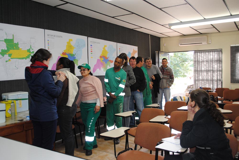 Funcionários recebem a vacina da gripe