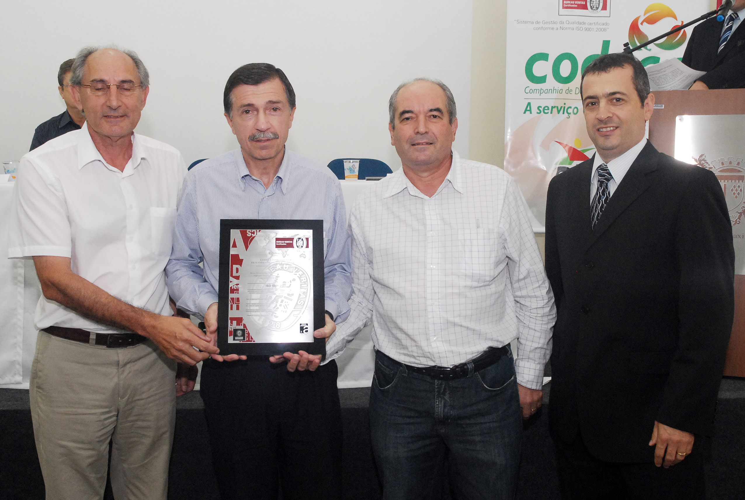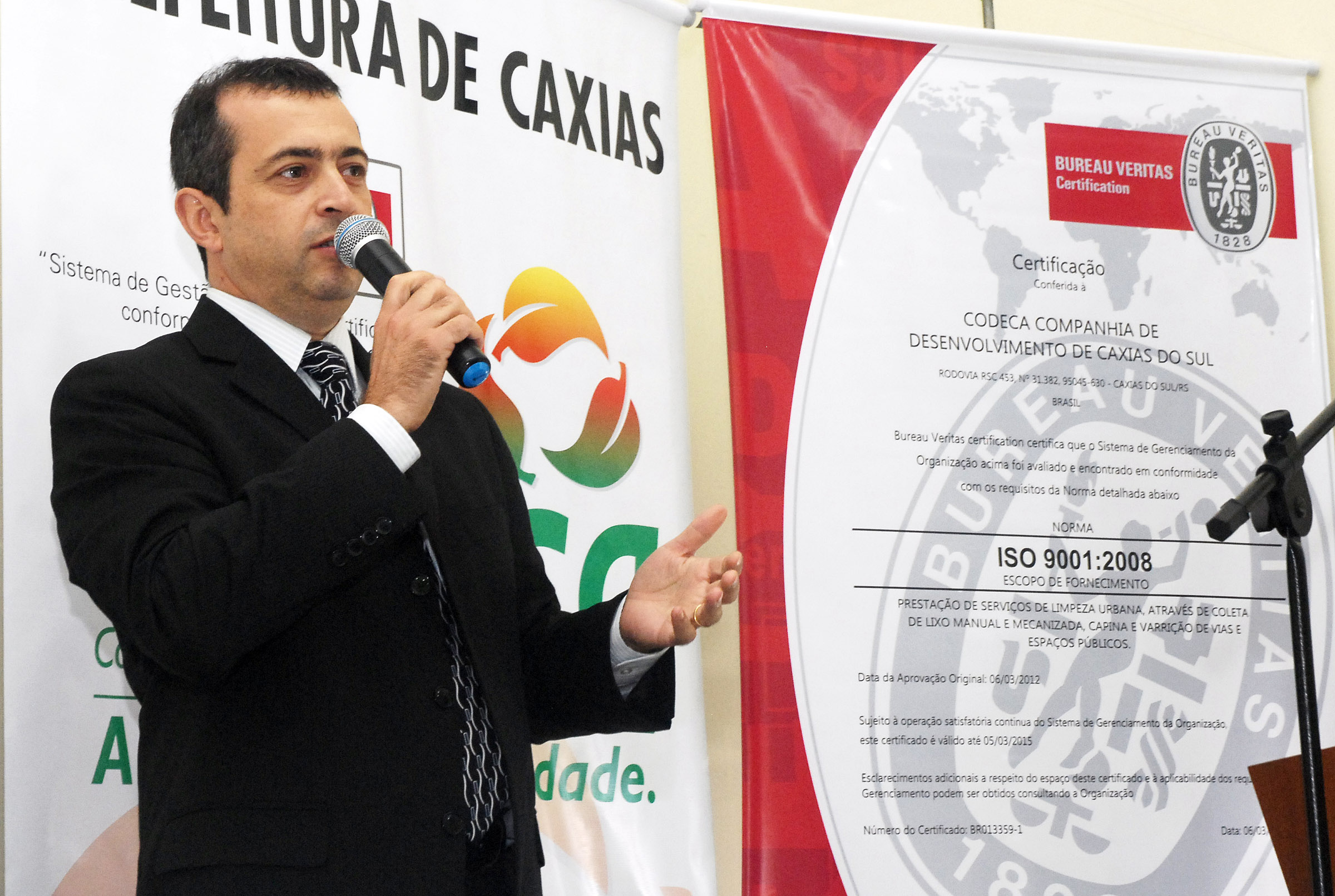 A Companhia de Desenvolvimento de Caxias do Sul - CODECA é a primeira empresa pública do Brasil a receber a certificação ISO 9001: 2008. O reconhecimento foi conferido no setor de prestação de serviços de limpeza urbana, através de coleta de lixo manual e mecanizada, capina e varrição de vias e espaços públicos. A entrega da certificação ocorreu em evento no Auditório do Centro Administrativo Municipal, nesta segunda-feira, dia 19 de março. O gerente comercial do Bureau Veritas Certification, Amauri Ávila, entregou o certificado ao diretor-presidente da CODECA, Adiló Didomênico, ao diretor administrativo-financeiro, Jozé Luiz Zechin, e ao diretor técnico da Companhia, Celso Empinotti.De acordo com José Luiz Zechin, a conquista da certificação é fruto de ações definidas no Planejamento Estratégico de 2010, adotado pela Codeca. “Foram dois anos de restruturação de setores e procedimentos para se enquadrar às exigências estabelecidas pela certificação”, destacou. Para atender às normas, foram, por exemplo, implantados GPSs nos caminhões de coleta de lixo, para acompanhamento da frota em tempo real. Também foi feito o mapeamento da cidade, com ampliação da fiscalização a fim de sanar situações conflitantes. Além disso, 80% dos procedimentos internos foram informatizados, entre outros requisitos.O gerente comercial do Bureau Veritas Certification, Amauri Ávila, explicou que a certificação ISO 9001 designa um grupo de normas técnicas que estabelece um modelo de gestão da qualidade para organizações em geral, qualquer que seja o seu tipo ou dimensão. “Sua implantação contribui para o cumprimento das tarefas e gera maior satisfação entre clientes e usuários. Um dos grandes pilares da ISO 9001 é a melhoria contínua. A conquista pela CODECA reconhece um trabalho de qualificação que vem sendo feito constantemente”.O diretor-presidente da Companhia, Adiló Didomenico, destacou que a implantação da ISO 9001 foi um grande desafio. “A CODECA possui 1170 funcionários que prestam serviço essencial para a cidade de Caxias do Sul. Os processos foram absorvidos pela empresa e os benefícios começaram a aparecer. Ganhamos força e ritmo de melhoria para conquistar o certificado. Devo lembrar que esta tarefa não terminou, apenas criamos a base de operação e informação que nos permitirá a evolução permanente e de qualidade nos serviços prestados pela Codeca para Caxias do Sul”.Representando a Prefeita em Exercício, Geni Peteffi, o secretário da Habitação, Flávio Cassina, parabenizou os colaboradores da empresa pelo trabalho, que levou à certificação. “A CODECA rompeu uma série de paradigmas, venceu dificuldades e hoje presta um serviço que é modelo para o Estado e para o País”.