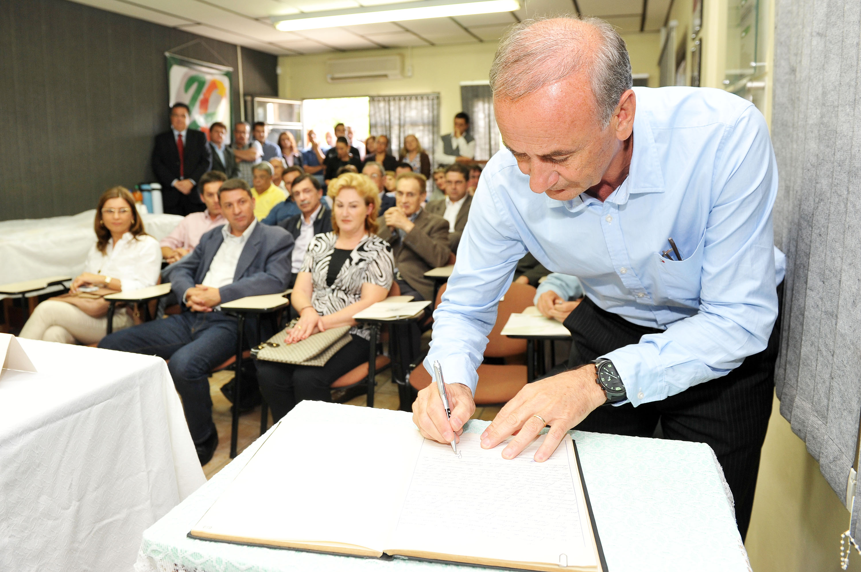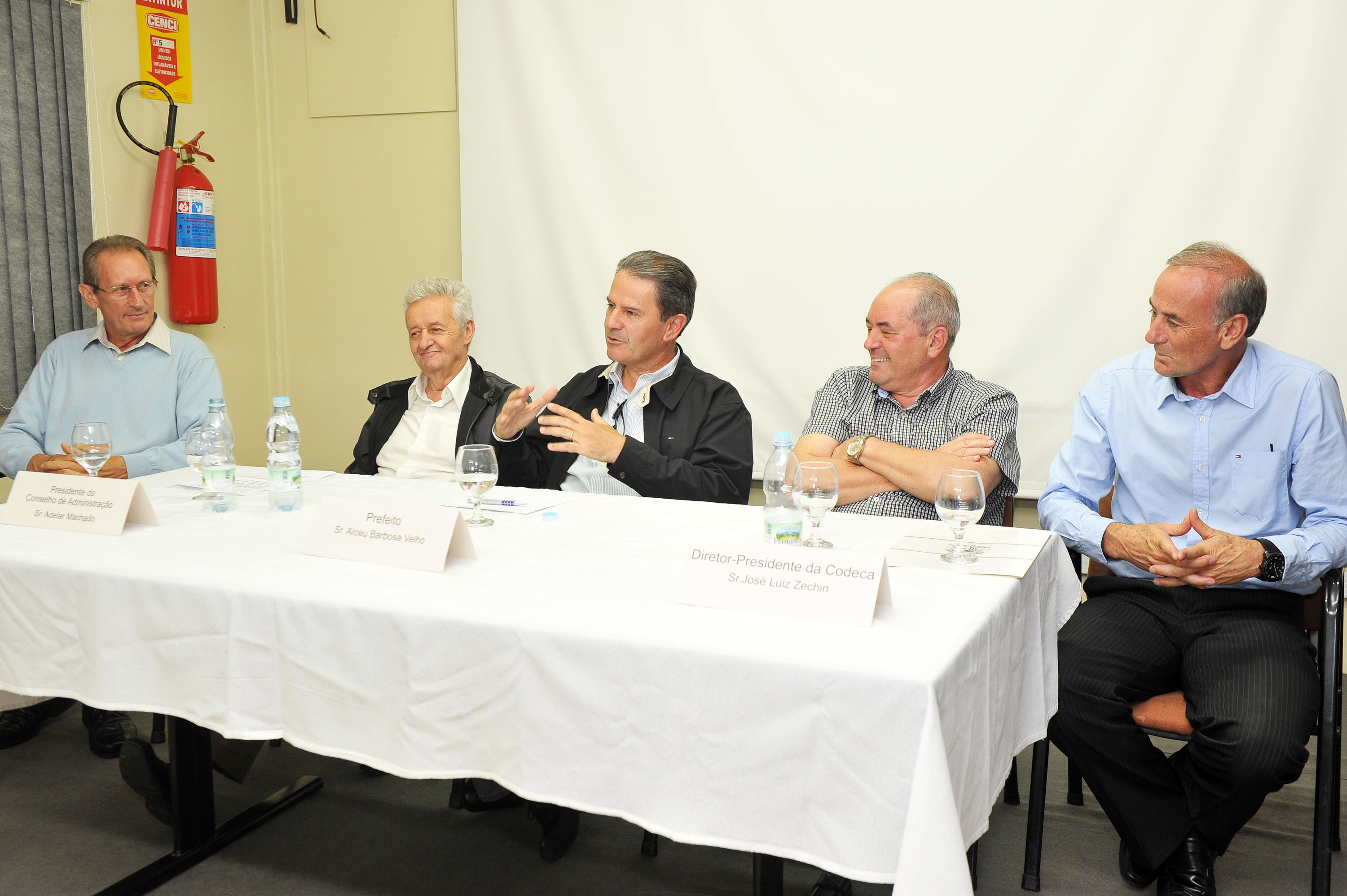 Prefeito Alceu Barbosa Velho, representando a Prefeitura de Caxias do Sul, acionista majoritária da CODECA (Companhia de Desenvolvimento de Caxias do Sul), empossou na tarde desta quarta-feira, dia 02, a nova diretoria da Companhia. Assumiu, como Diretor-Presidente, Valter Augusto Webber e, como Diretor Administrativo-Financeiro, Milton Luiz Balbinot. O Vice-prefeito Antonio Feldmann, a primeira-dama e coordenadora de comunicação da Prefeitura Alexandra Baldisserotto, integrantes do Conselho de Administração e do Conselho Fiscal, além de diretores e gerentes da Codeca também estiveram presentes na solenidade Ao se despedir, José Luiz Zechin traçou uma breve retrospectiva das conquistas realizadas durante esses oito anos em que esteve, juntamente com Adiló Didomenico, à frente dos trabalhos da empresa.Em seu pronunciamento, o prefeito, Alceu Barbosa Velho, recapitulou um pouco do história da CODECA desde 2005, observando o seu crescimento, desenvolvimento e qualidade. “A CODECA é o braço da prefeitura. Temos como objetivo avançar cada dia mais a caminhada, que foi iniciada pelo Adiló e pelo Zechin.” O Diretor-Presidente, Valter Augusto Webber, destaca que este primeiro momento será de integração e conhecimento, mas assegura a importância de dar continuidade ao trabalho previsto no Planejamento Estratégico da Companhia, com foco na qualificação permanente e constante do serviço prestado à comunidade de Caxias. “Manteremos a mesma humildade e simplicidade, valorizando e reconhecendo o trabalho de todos os colaboradores. Ao mesmo tempo, convoco os conselhos Fiscal e de Administração, os gerentes, o grupo de planejamento e todos os colaboradores, para que continuem sendo atuantes, contribuindo cada vez mais para o sucesso da CODECA. Valter Augusto Webber, 63 anos, é graduado em Engenharia Operacional Mecânica de Máquinas pela Universidade de Caxias do Sul. Casado e pai de três filhos. Entre um vasta caminhada curricular de cursos e especializações, atuou por 38 anos consecutivos na empresa Guerra S/A.