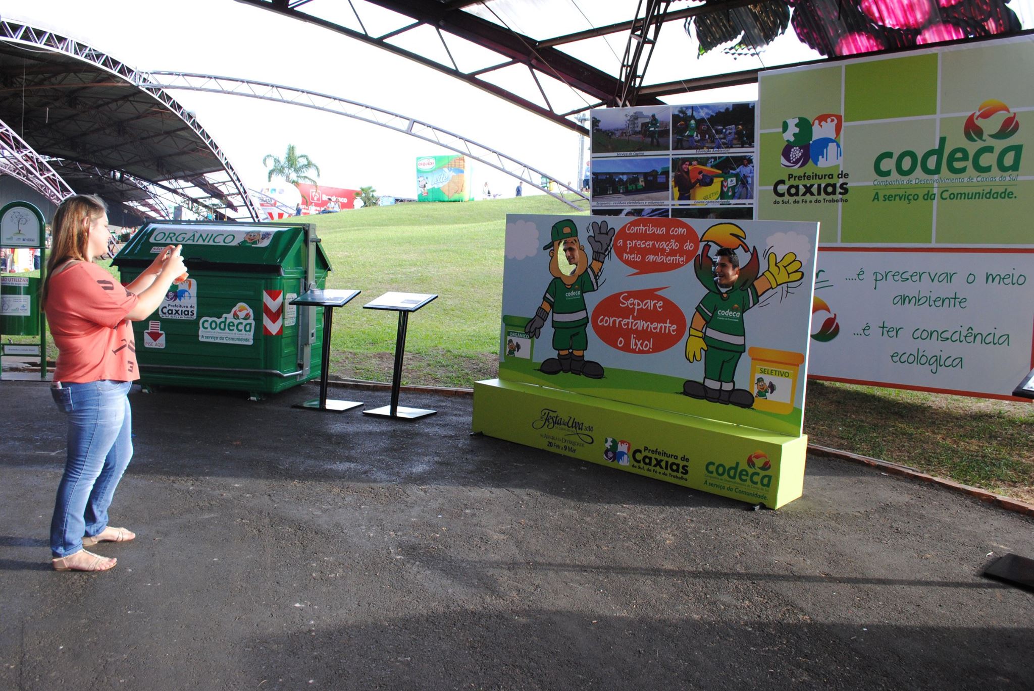 A Companhia de Desenvolvimento de Caxias do Sul (CODECA) coletou cerca de 13 toneladas de resíduos orgânicos e 7,5 toneladas de seletivos nos quatro primeiros dias da Festa da Uva. Além da limpeza, a empresa trabalha intensamente repassando orientações sobre educação ambiental. A novidade desta edição é o painel montado no Pavilhão 1, com uma estrutura para os visitantes tirarem fotografias com Codequito e o Reciclito, mascotes da empresa. O objetivo é promover ainda mais a consciência ecológica nos expositores e visitantes.Desde o início do evento, cerca de 250 recipientes para lixo orgânico (verdes) e outros 250 recipientes para seletivo (amarelos) foram espalhados nos locais de circulação de visitantes e expositores. Além disso, outros 100 contêineres e 150 lixeiras papeleiras estão disponíveis ao longo do Parque.Durante os dias de Festa, equipes de funcionários da Companhia de Desenvolvimento de Caxias do Sul (CODECA) cuidam da limpeza das áreas externas do parque, da praça de alimentação, do espaço de degustação de uvas, do interior (corredores) dos pavilhões 1 e 2, do centro de eventos, e do espaço multicultural, além de seguirem realizando o trabalho de coleta de resíduos urbanos na cidade em caminhões adesivados com o slogan do evento. A Codeca tem tradição em deixar a Festa Nacional da Uva limpa. Não só na estrutura onde ocorre o evento, mas também nos desfiles realizados. Logo após passar o corso, a equipe da Codeca varre e lava a rua Sinimbu.
