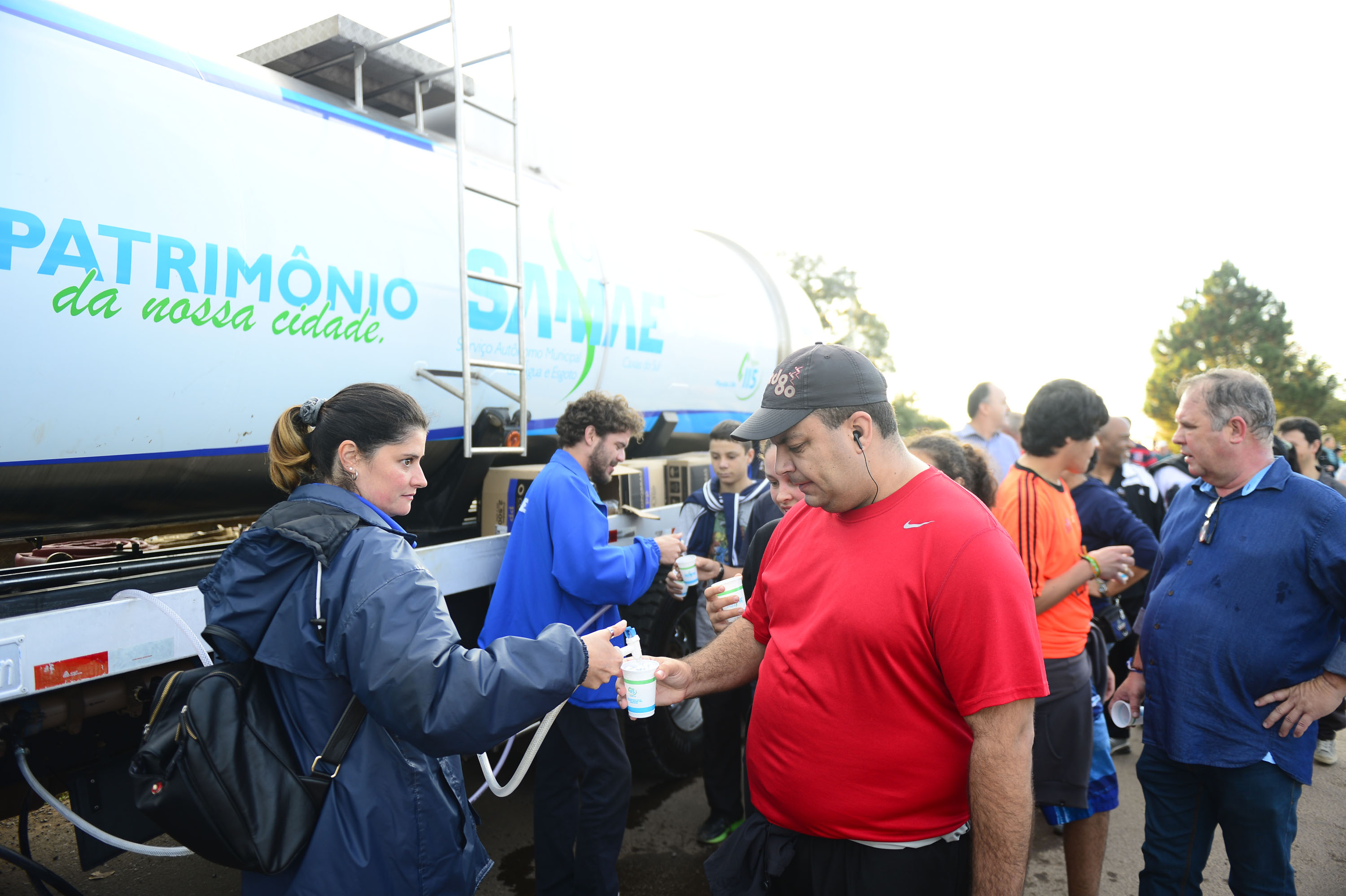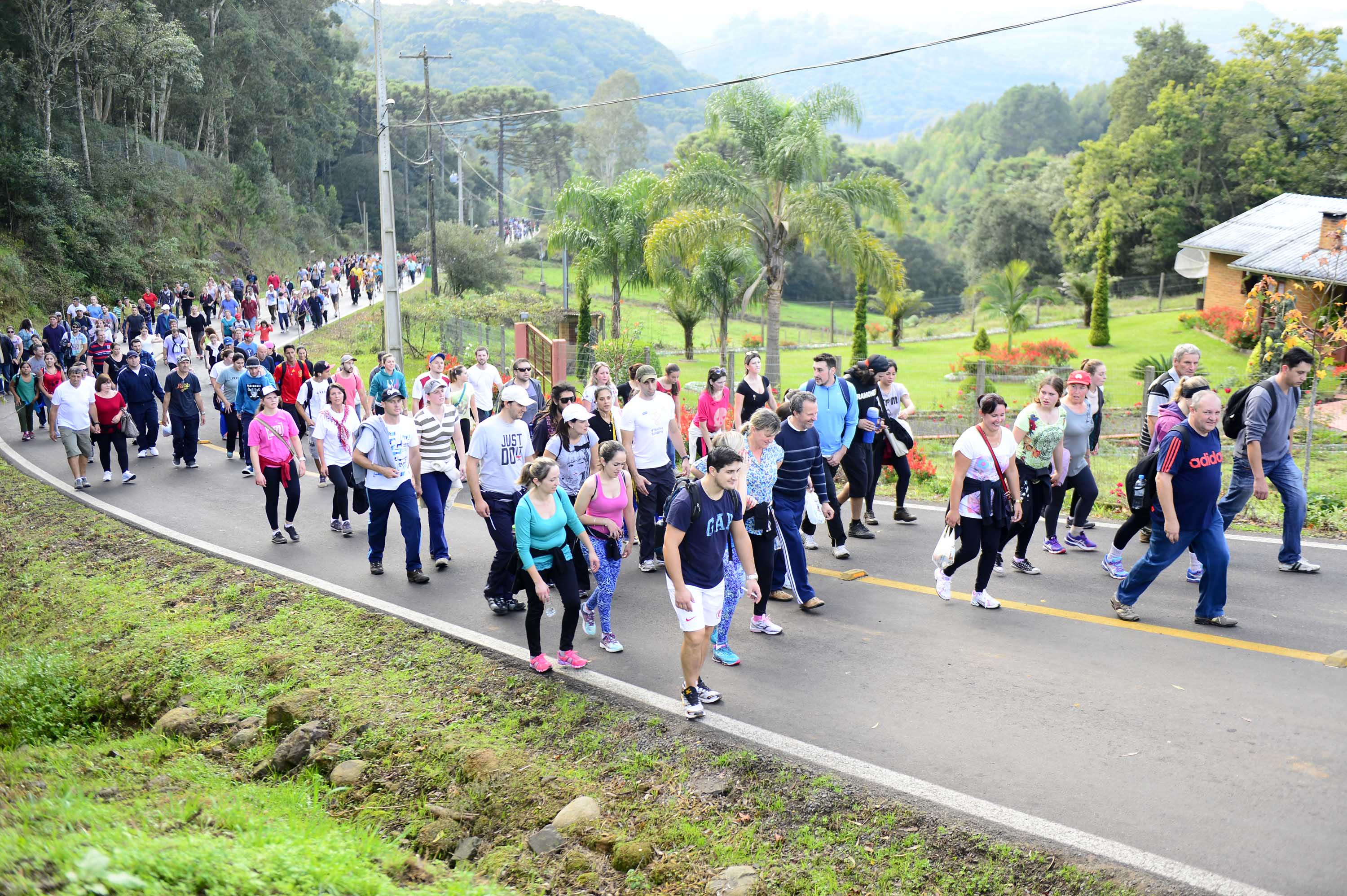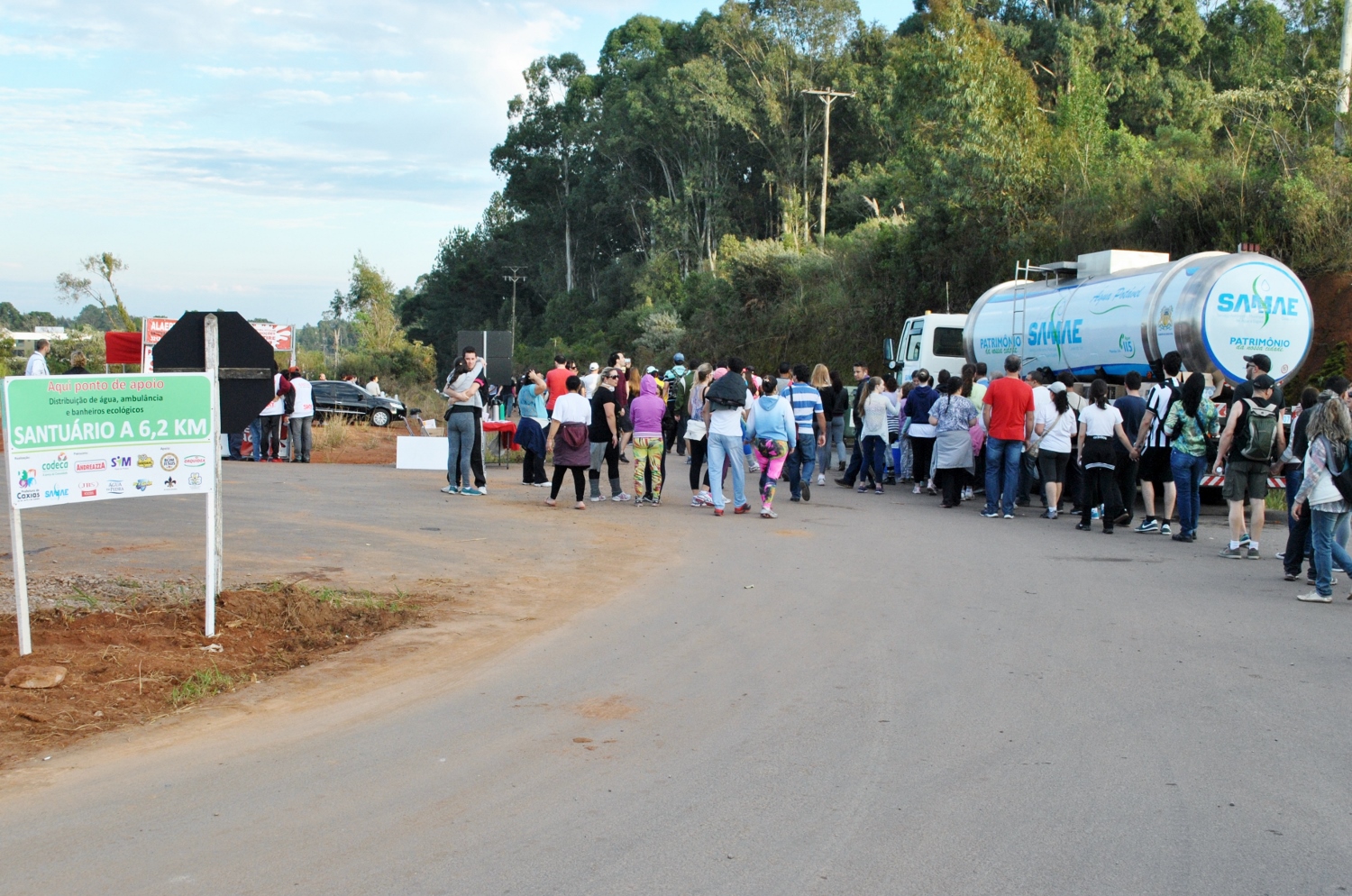 CERCA DE 300 VOLUNTÁRIOS PRESTARAM AUXÍLIO AOS 147 MIL ROMEIROS DE CARAVAGGIO Ao todo, foram distribuídos 55 mil copos de água e recolhidos mais de seis toneladas de resíduos sábado (23), terça-feira (26). Aproximadamente 300 pessoas prestaram auxílio aos romeiros nos 10 pontos de apoio instalados ao longo do percurso. O Serviço Autônomo Municipal de Água e Esgoto (SAMAE) distribuiu 55 mil copos de água.Dois caminhões-pipa da autarquia ficaram à disposição no trajeto, sendo um no ponto 3 e outro no ponto 9. Muitos romeiros levaram suas próprias garrafinhas, o que ajudou a reduzir o consumo de copos descartáveis. A Companhia de Desenvolvimento de Caxias do Sul (CODECA) instalou 30 contêineres e 200 tonéis para o descarte de resíduos. Além disso, foram distribuídas cerca de 40 mil sacolinhas de lixo. No total, foram recolhidos mais de seis toneladas de resíduos, duas toneladas a mais do que em 2014. O gerente comercial e de comunicação e marketing da CODECA, e coordenador da ação de apoio aos romeiros, Gilberto Meletti, destacou a importância do trabalho realizado por todas as secretarias, entidades e voluntários envolvidos. “Como prevíamos, a maior concentração de romeiros se deu no